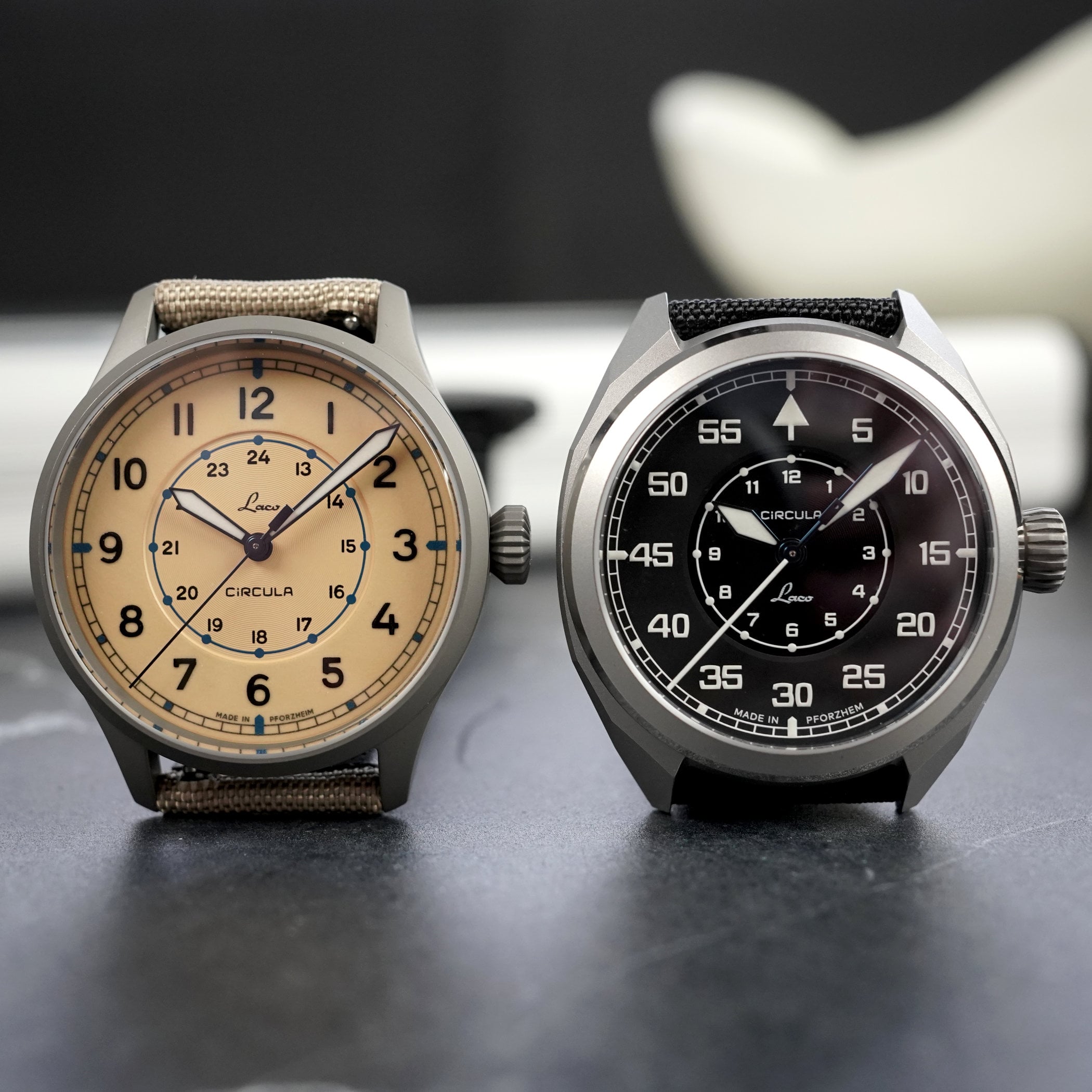 Pforzheim is known as Germany’s “Golden City” for its jewellery and watchmaking (alongside Glashütte) activities, and both Laco and Circula have deep roots there. Each brand is celebrating an anniversary, 100 years for Laco and 70 years for Circula, and they’ve partnered to celebrate with a pair of watches honouring each brand and German watchmaking history. The collaboration name, ProLab, comes from “Pro” in the collections that inspired the set – Circula’s PROTrail and Laco’s PRO line – and “Lab” that refers to a collaborative space to develop ideas. Lab also stands for (co)lab for collaboration. A single piece was initially planned, but two watches were chosen to better represent each brand and a shared vision.