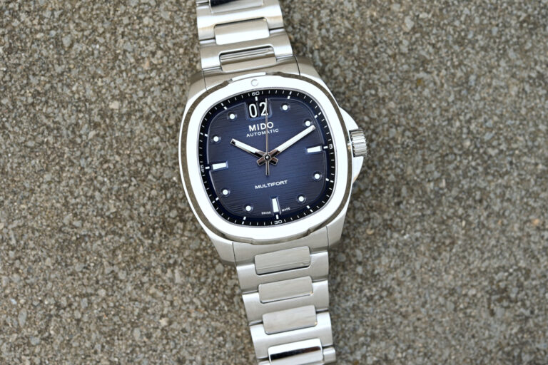 Mido’s Multifort lineage goes back to the 1930s, indicating a waterproof, antimagnetic and shock-resistant watch. A milestone watch was the 1935 Multifort Automatic, further solidifying the brand’s capabilities by combining the Multifort’s traits with an automatic movement. The Multifort TV collection, however, is rooted in the 1970s, a period when most of today’s popular luxury sports watches find their origins. It was first introduced in 1973, so it actually pre-dates some of the biggest names in the field (Here’s looking at you, Nautilus, Laureato, Ingenieur). The style is typical of the era, with a rounded-square case profile, reminiscent of, well, a TV.