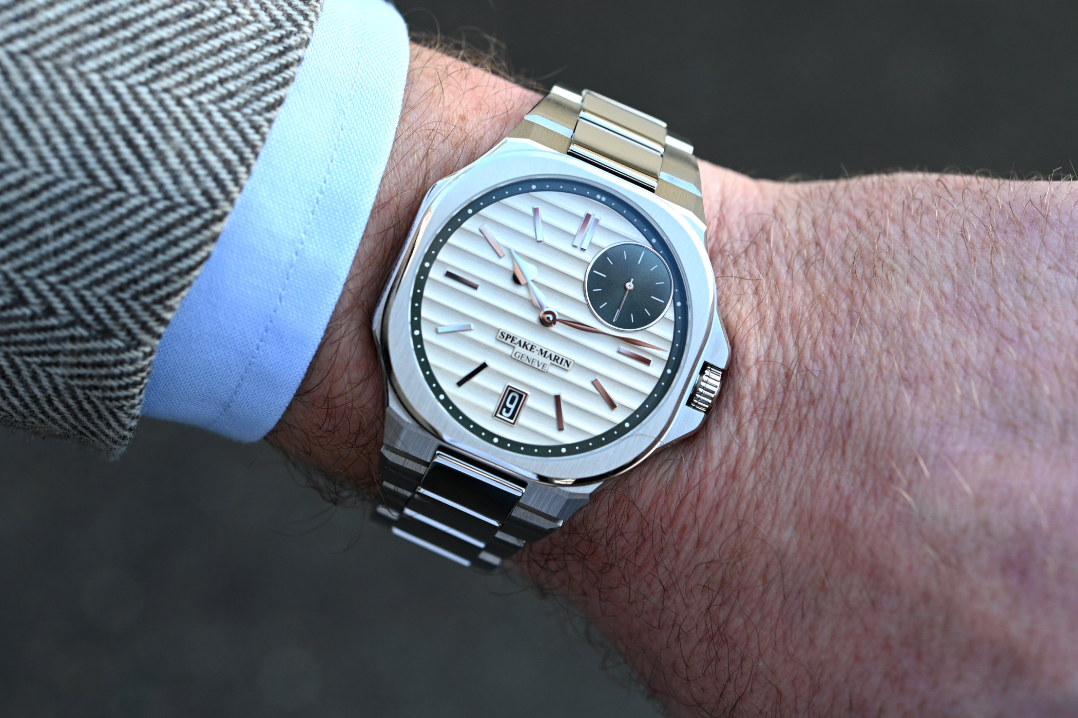 Speake Marin’s Ripples Dune Date comes on an integrated steel bracelet, is limited to 60 pieces, and will be available from 9 April 2024 for a retail price of CHF 24,900 (excl. tax).