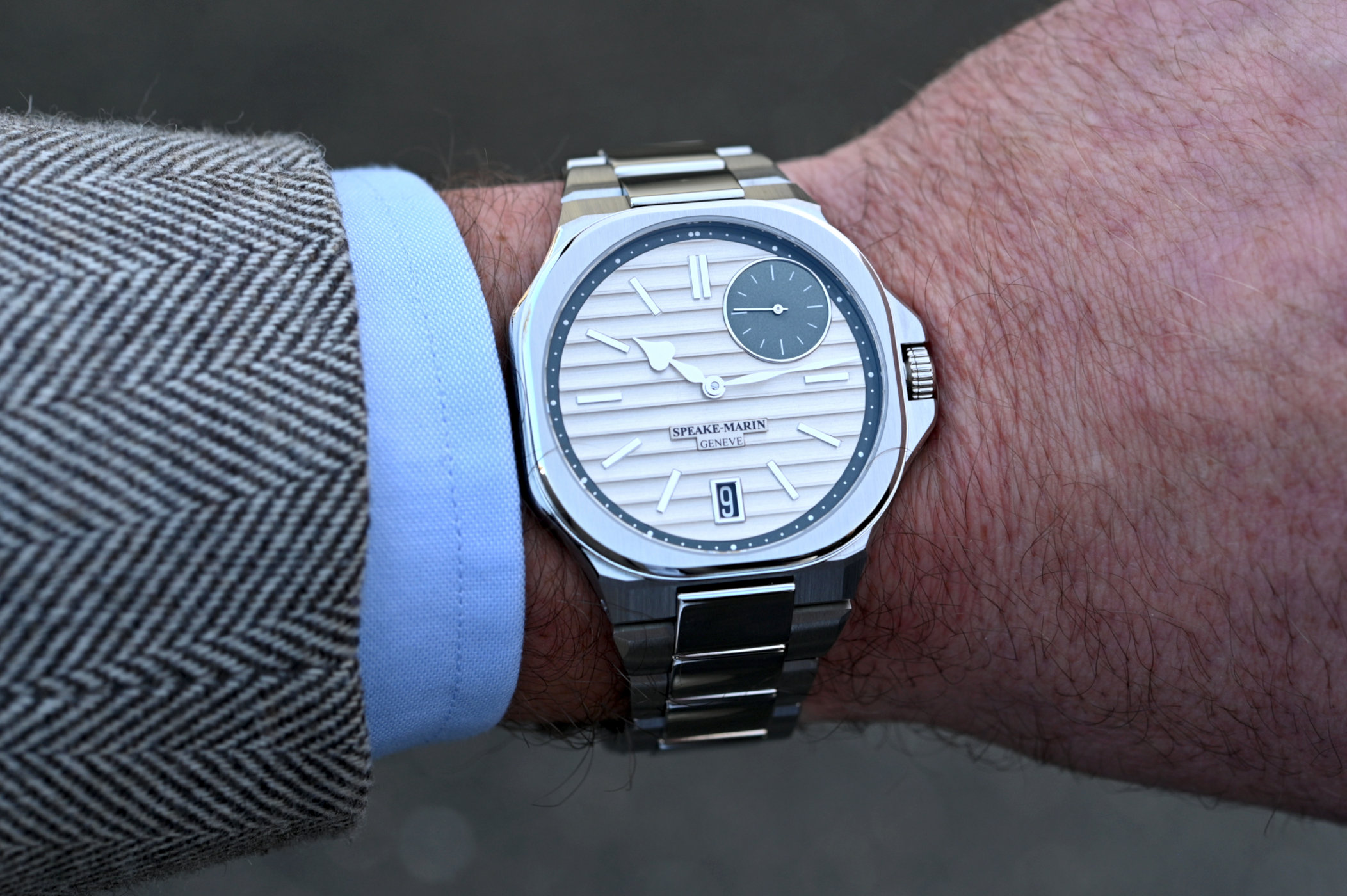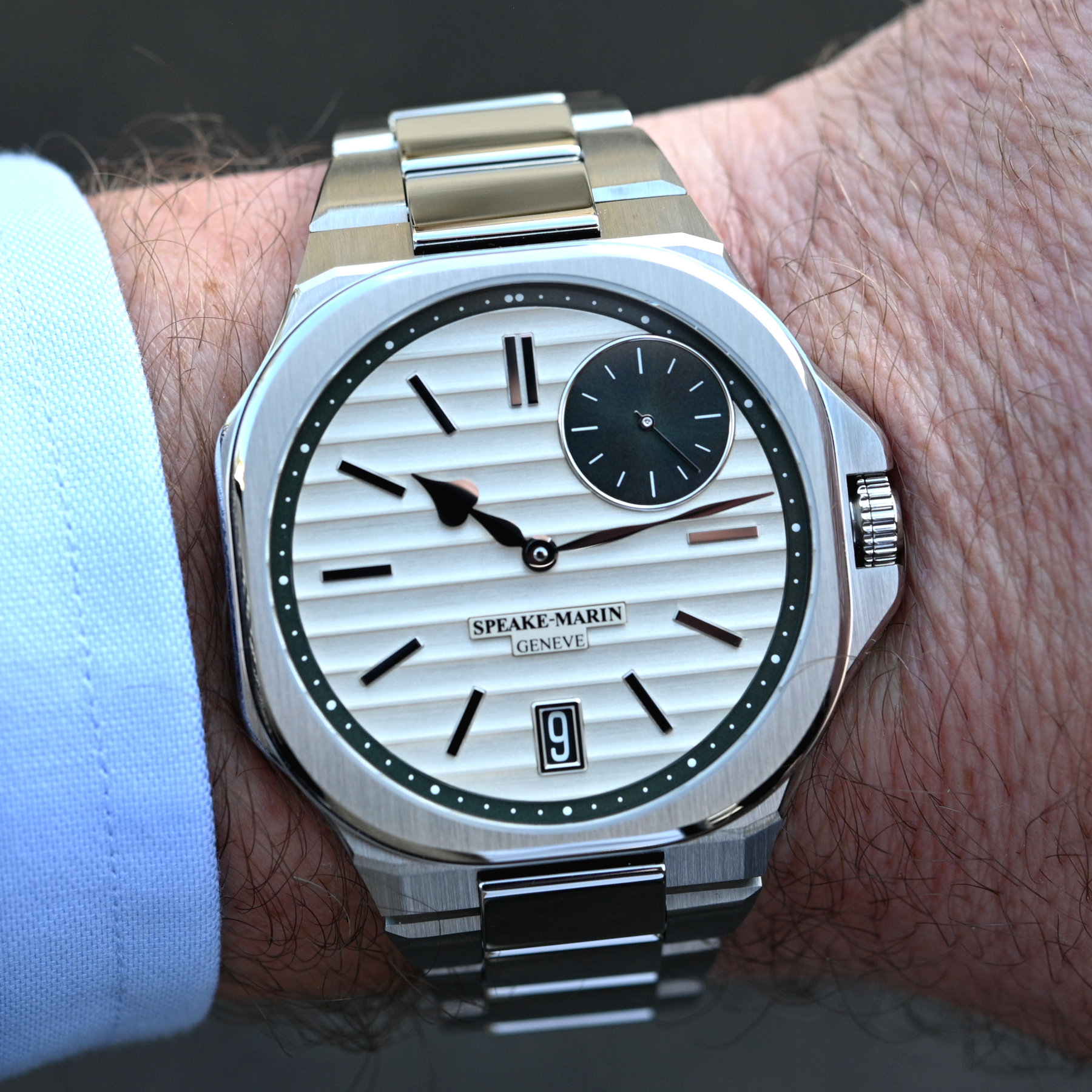 Speake Marin’s Ripples Dune Date comes on an integrated steel bracelet, is limited to 60 pieces, and will be available from 9 April 2024 for a retail price of CHF 24,900 (excl. tax).