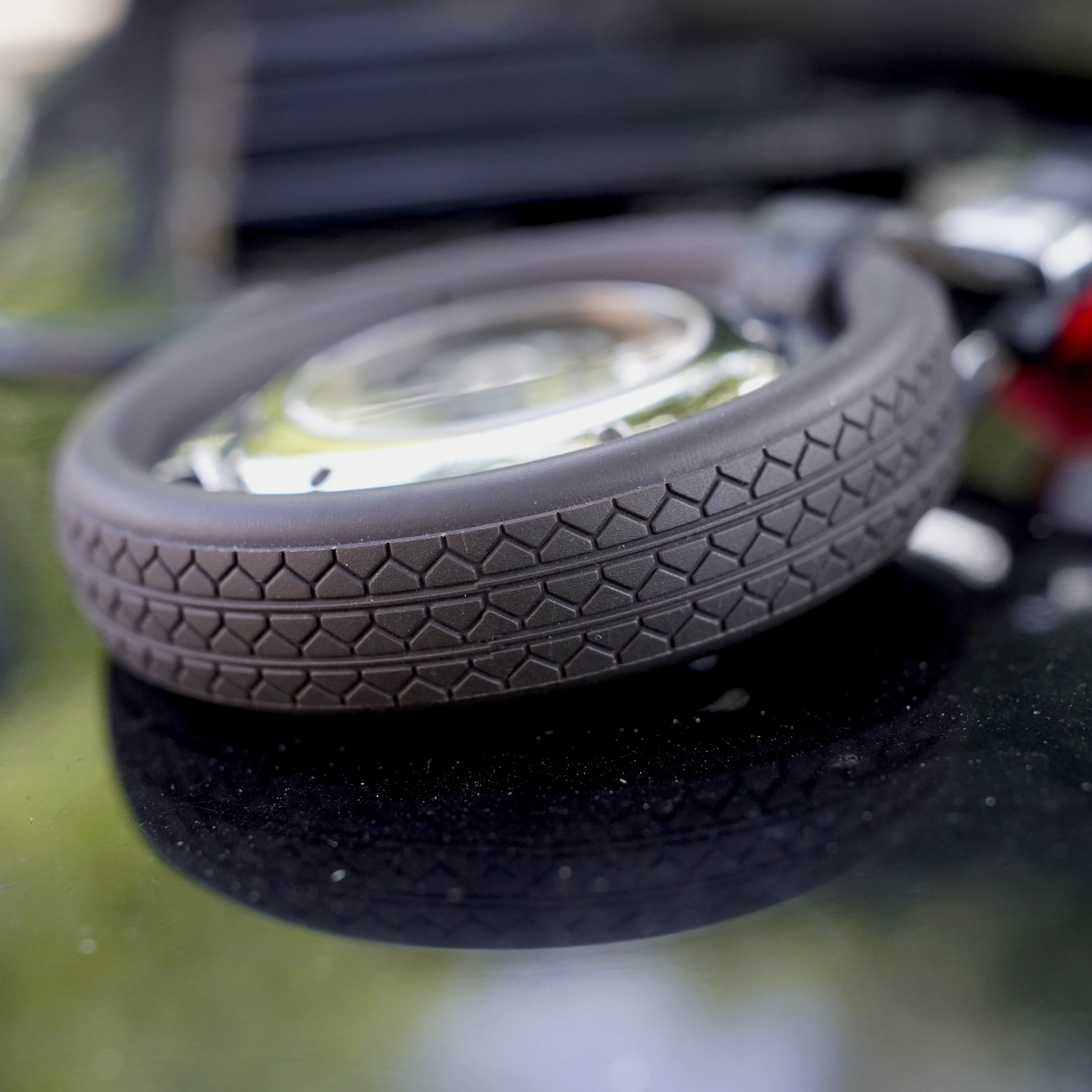 Dating back to the golden age of motoring, the keyring tyre watch was widespread in the middle of the 20th century. Through Diederik’s research, he discovered almost 50 brands that once produced items similar to this, including names such as Ruhla, Timex and Marvin. The idea is to carry a watch on your key chain, to have the time with you at, well, all times. It was often gifted to people by friends and relatives, to celebrate one’s passion for speed, adventure and life on the road.