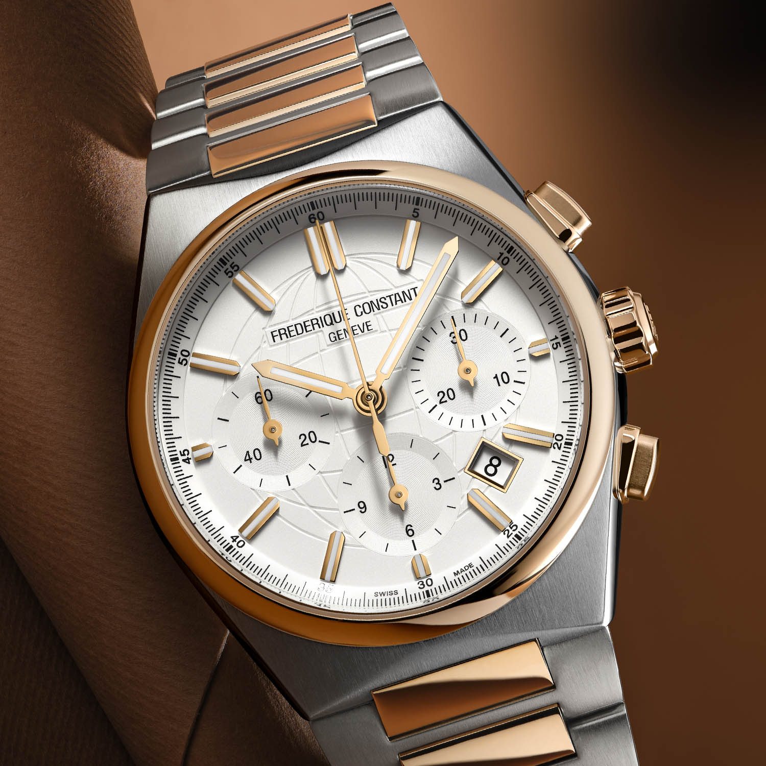 Quick Facts – 41mm x 14.22mm – stainless steel or stainless steel with rose gold plated elements – sapphire crystal front and back – 100m water-resistant – blue and white panda dial – silver and rose gold dial – black dial – applied indices and hands with Super-LumiNova – Calibre FC-391 (modified Valjoux 7750) – automatic chronograph – 26 jewels – 28.800vph – 60h power reserve – hours, minutes, small seconds, chronograph with 12-hour and 30-minute counter, date – interchangeable steel bracelet, rubber or leather straps – Panda dial limited to 1,888 pieces – EUR 2,995 (black dial, steel case) or EUR 3,295 (bicolour or blue panda)