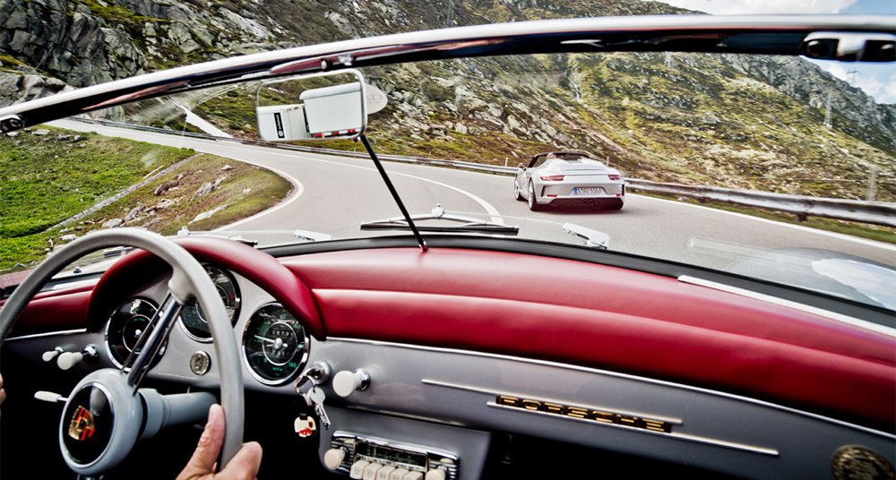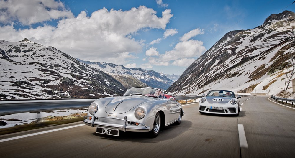 One of our favourite websites, outside the world of watches, is Classic Driver. On the occasion of the new limited edition Porsche Speedster, Classic Driver gathered all five generations of Porsche Speedster at the summit on the Gotthard Pass. And that event produced some magnificent pictures.