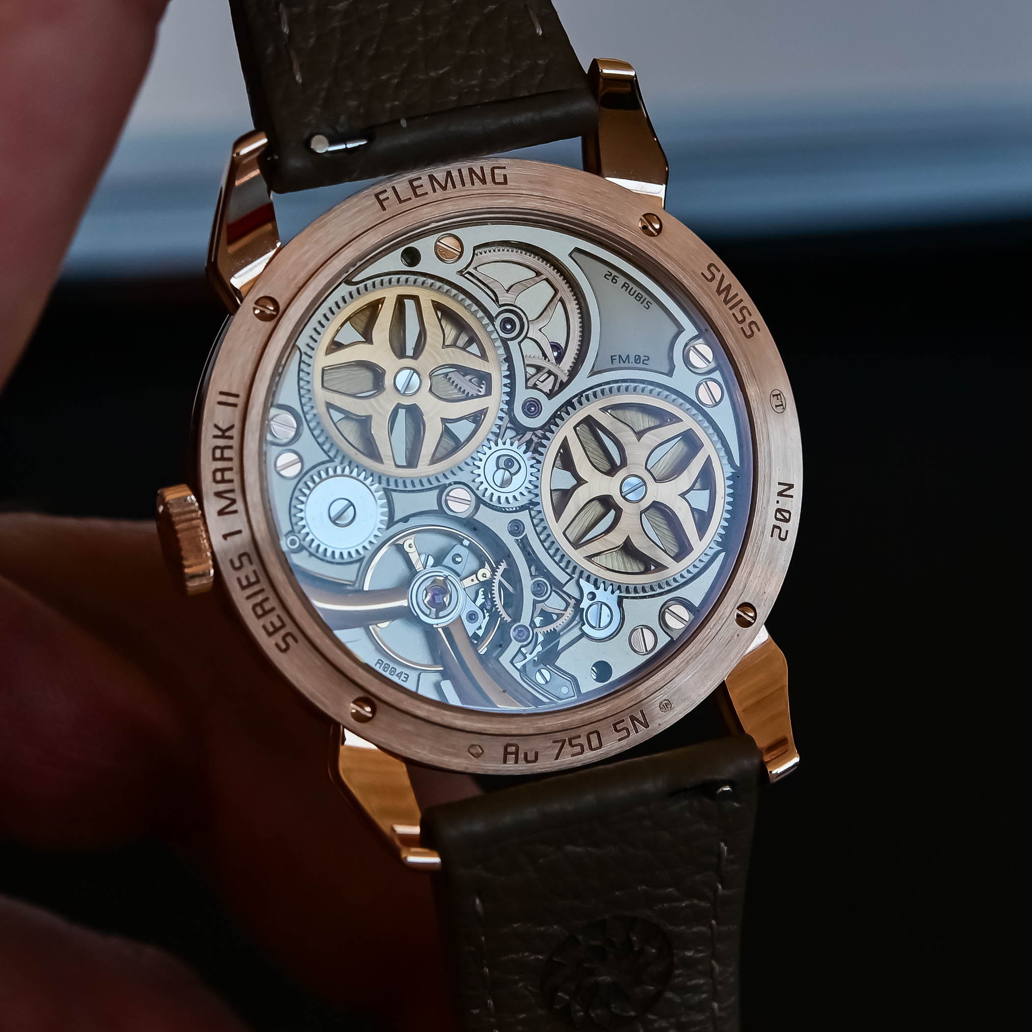The new calibre FM.02, like the FM-01 for the inaugural series, was developed with Jean-François Mojon. It has a slim profile under 4mm, operates at 21,600 vibrations/hour and delivers a 168-hour power reserve from twin barrels. For this new version, bridges have been reshaped with broader anglage and more sculptural forms, and bespoke wheels mimic the curvature of the case and lugs. Finishing is extensive and consistent, with brushing, graining, frosting and polishing applied throughout. The interior angles, 189 in total, are executed by hand, including components not visible to the wearer. The movement executions mirror the dial, anthracite tones for Pacific and gold hues for Redwood.