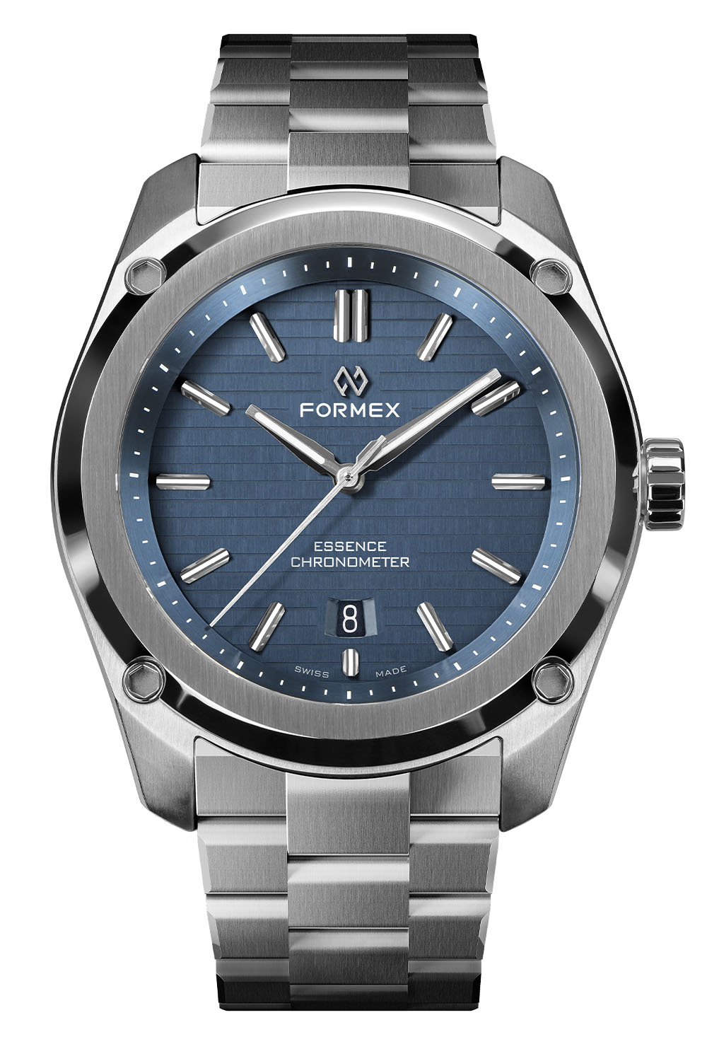 As its name suggests, the new Formex Essence ThirtyNine is presented in a 39mm case, which is fitted with the brand’s signature case suspension system for better shock absorption. Fashioned out of 316L stainless steel, it combines satin-brushed and polished surfaces in a sharply designed case. One of the defining features of the new model is its horizontally embossed dial. To achieve the crisp lines and sharp angles, the grooves are CNC-machined into the dial individually. Several colour options are available: blue, black, green or gradient grey.
