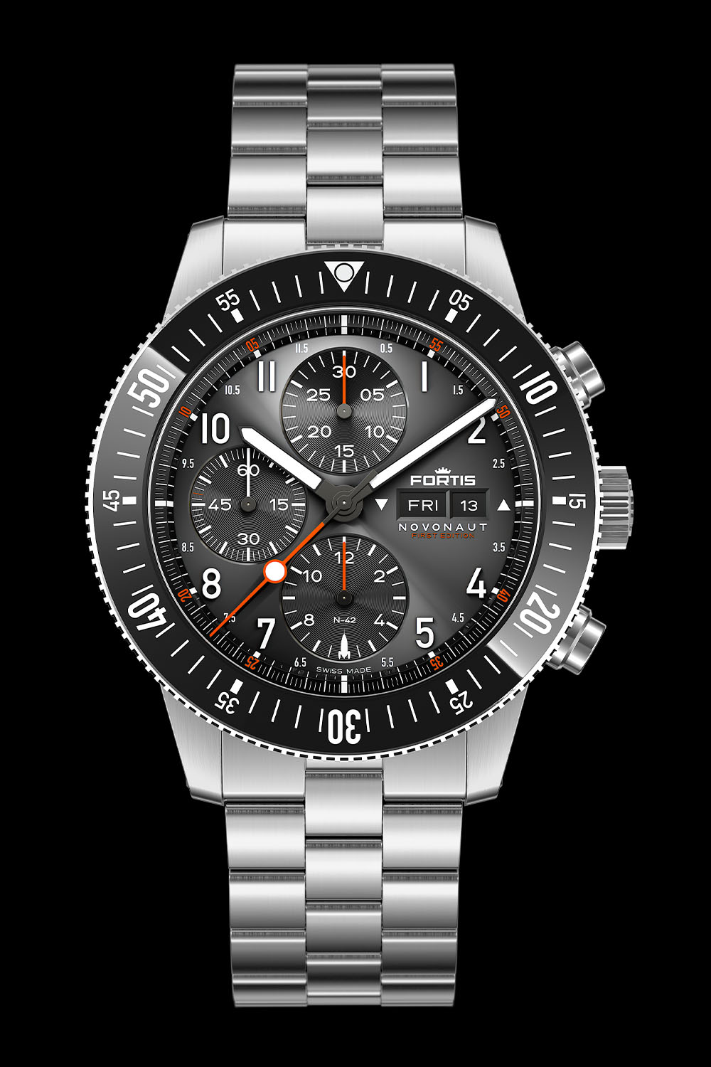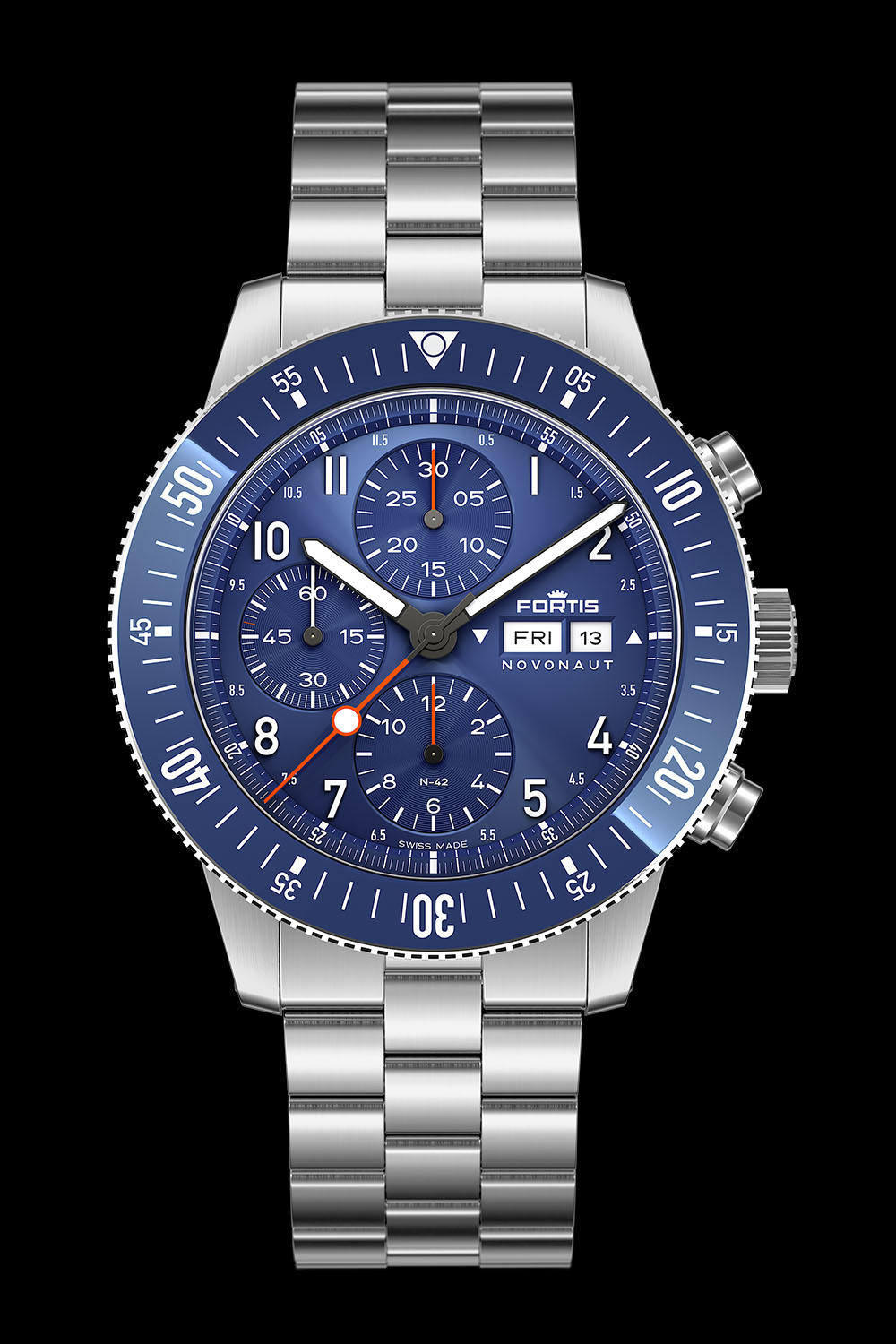 Things have been moving fast at Fortis. Under the lead of Jupp Philipp, the man who acquired the company about three years ago, most collections have been revamped or revived, and new models launched. Following an entirely refreshed Flieger collection, the return of the Marinemaster, and the introduction of the Stratoliner with a space-tested movement, some thought the brand had come full circle. But one important watch was missing, a model once known as the B-42 Official Cosmonauts Chronograph. And if the name has changed – for obvious reasons – it is time for this cult classic to be revamped with the new Fortis N-42 Novonaut Space Chronograph collection.