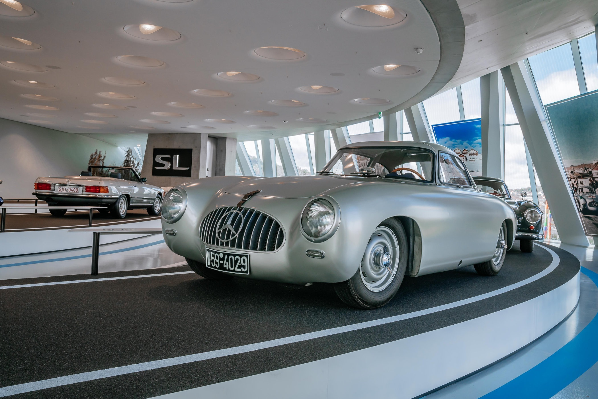 Taking a look at the image above, of the 1952 racing car side by side with the prototype from 1952 and the final version that was put on sale in 1954, the changes to the body become quite apparent. It’s touched upon in the video and you can easily see the more narrow and sleeker profile of the prototype. The design basically morphs from a purebred race car into this gorgeously shaped 300SL Gullwing. Mercedes-Benz built 1,400 coupes between 1954 and 1957, and 1,858 roadsters of the 300SL between 1957 and 1963. Its iconic design also served as an inspiration to the Mercedes-Benz SLS AMG, featuring Gullwing doors as well.