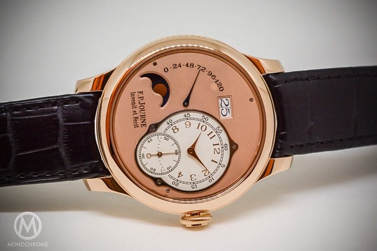 For FP Journe, the journey of wristwatches started at Baselword 1991, where he introduced its first watch to be worn on the wrist (several pocket watches preceded the wristwatches), a Tourbillon with Remontoire d’Egalité (a sort of constant force device) in a 38mm platinum case. This watch was very special at that time, as watches used to measure between 33mm and 36mm. It was huge because the movement required it. Since then, the 38mm case (and its shape) was emblematic of the brand. Of course, FP Journe evolved, as for example in 2001, with the 42mm Grande Sonnerie – that led the brand to also offer watches sized at 42mm in the rest of the collection. For years, you could choose watches at 38mm and some at 42mm. Things changed in 2013 with the Chronomètre Optimum (that we reviewed and explained here). The complexity of the movement required to move to a case measure a minimum of 40mm – and thus to a watch only available in 40mm or in 42mm. Same goes for the recent Octa Lune. Form now on, this will be the norm at FP Journe.