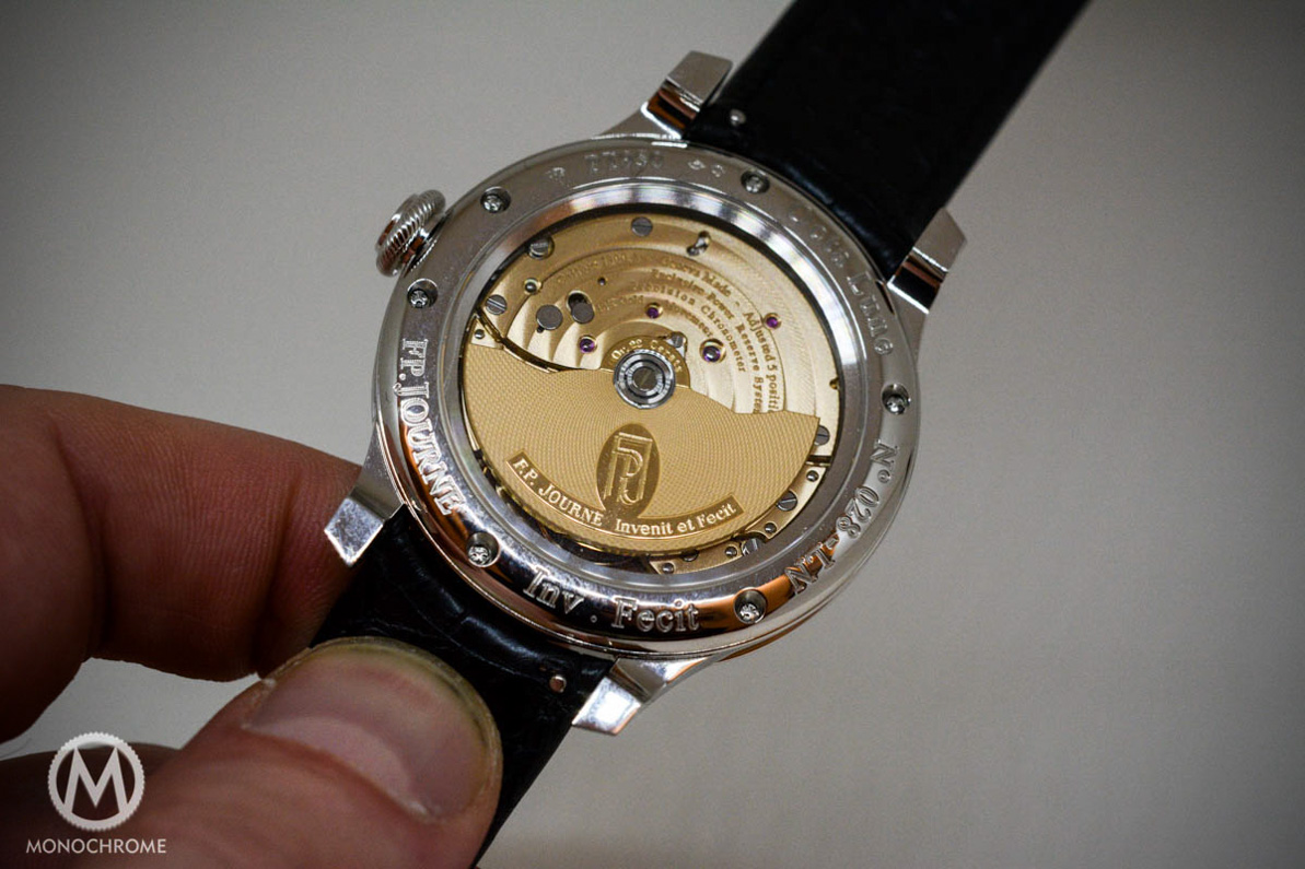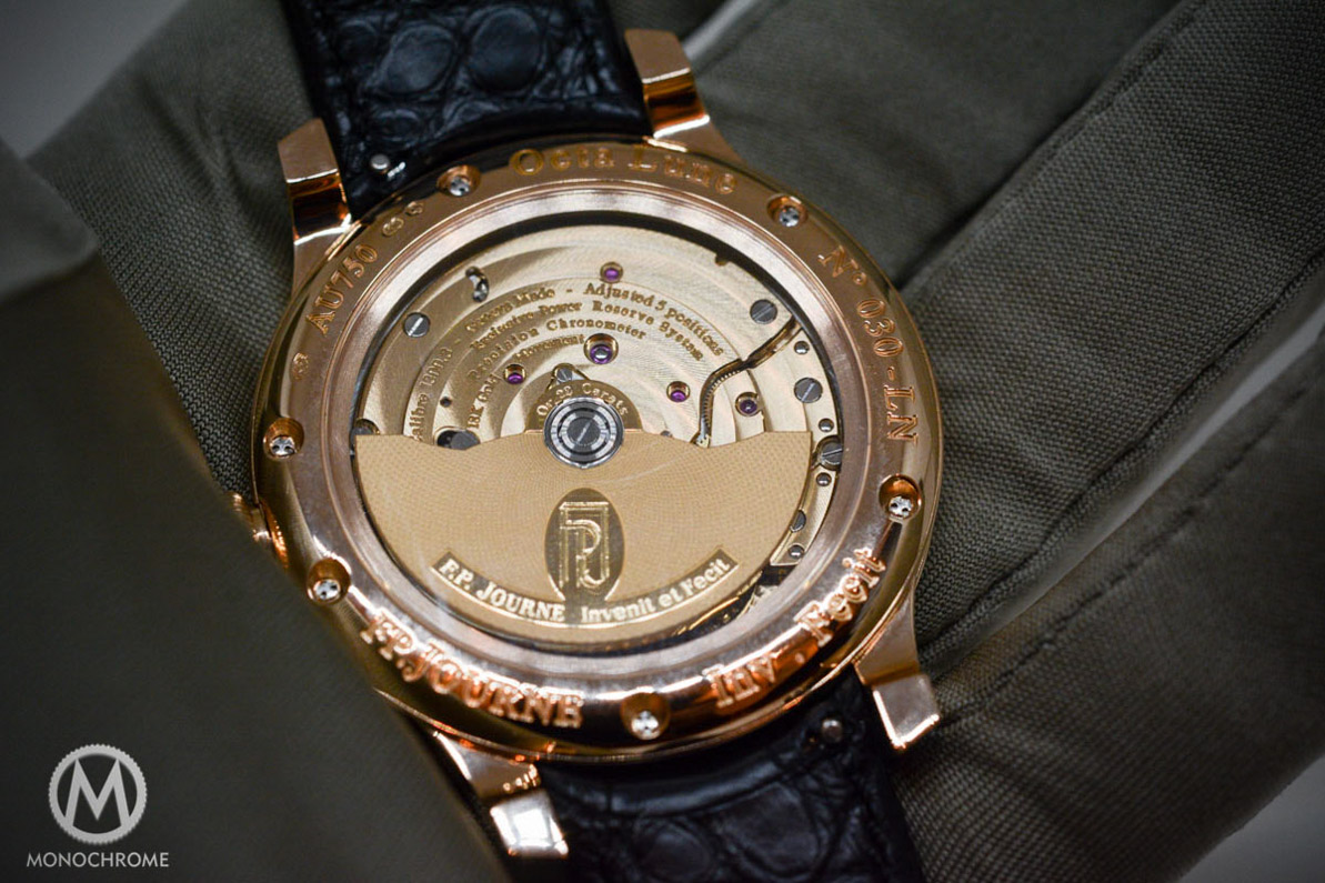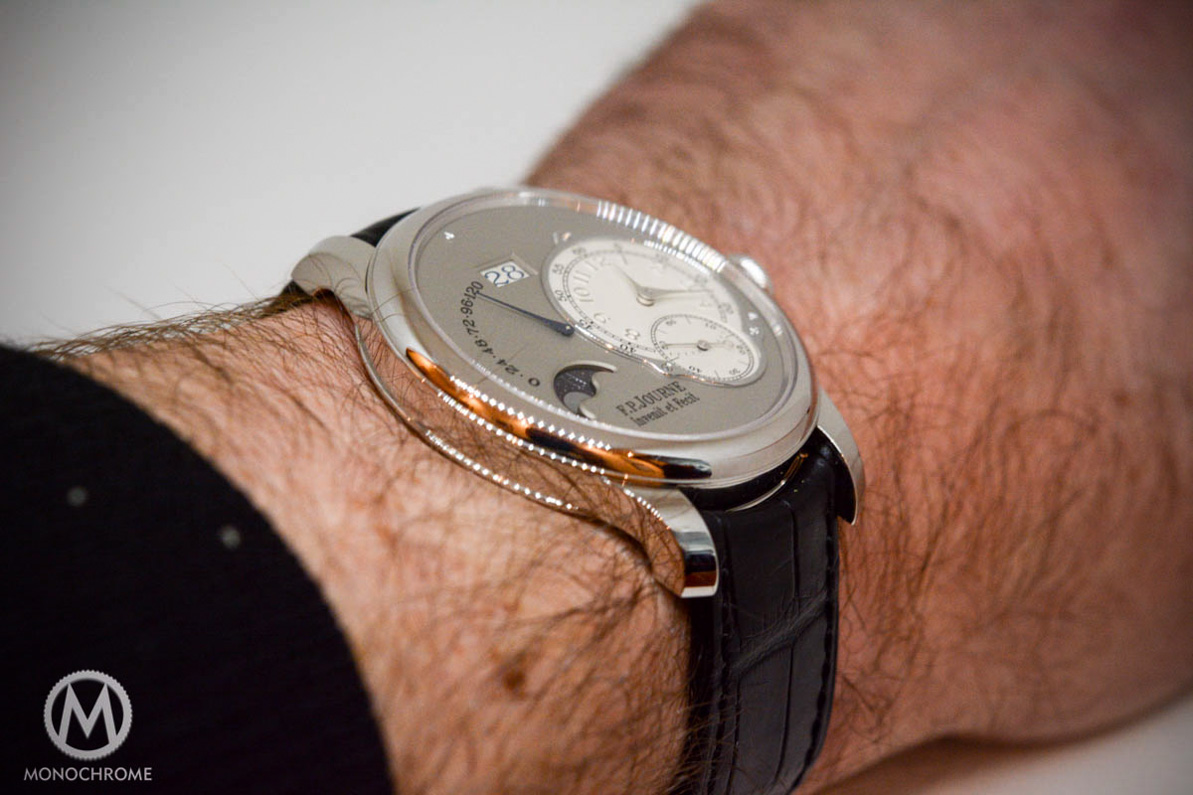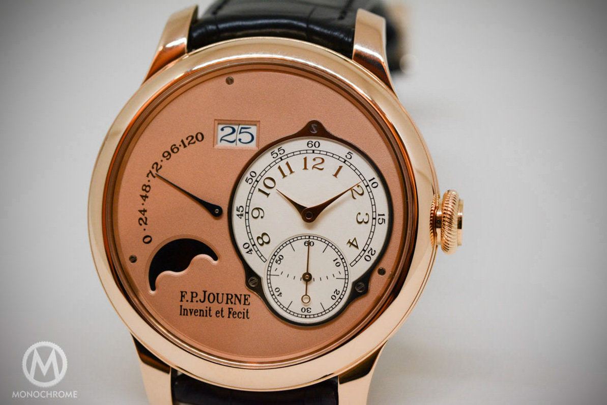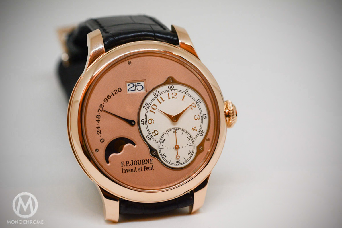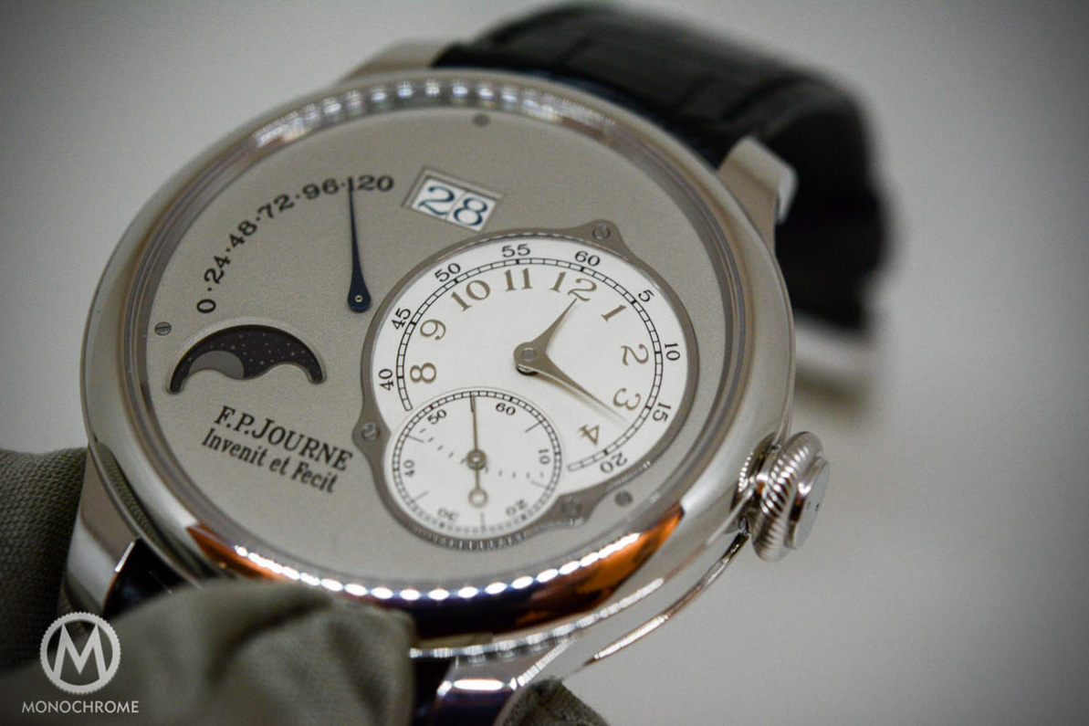 During the SIHH, not only do you get to see the 16 exposing brands but you also have the chance to see multiple independent watchmakers presenting their novelties. The ‘Wonder Week’, as some might call it, is a sort of Pre-Baselworld hidden fair, located in the 5-star hotels’ lobbies. Part of this running show was FP Journe, presenting its 2015 edition of the Octa Lune.