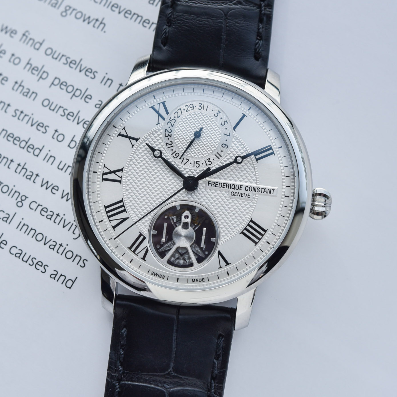 I do agree that FC’s styling is a serious weak point. Hands, fine; Romans, OK and even nicely proportioned. Stamped ‘guilloche’…go away. Trick to make a $200 quartz look fancier/better is a bad move on a $5K piece. And the date dial is a poor move, IMO.