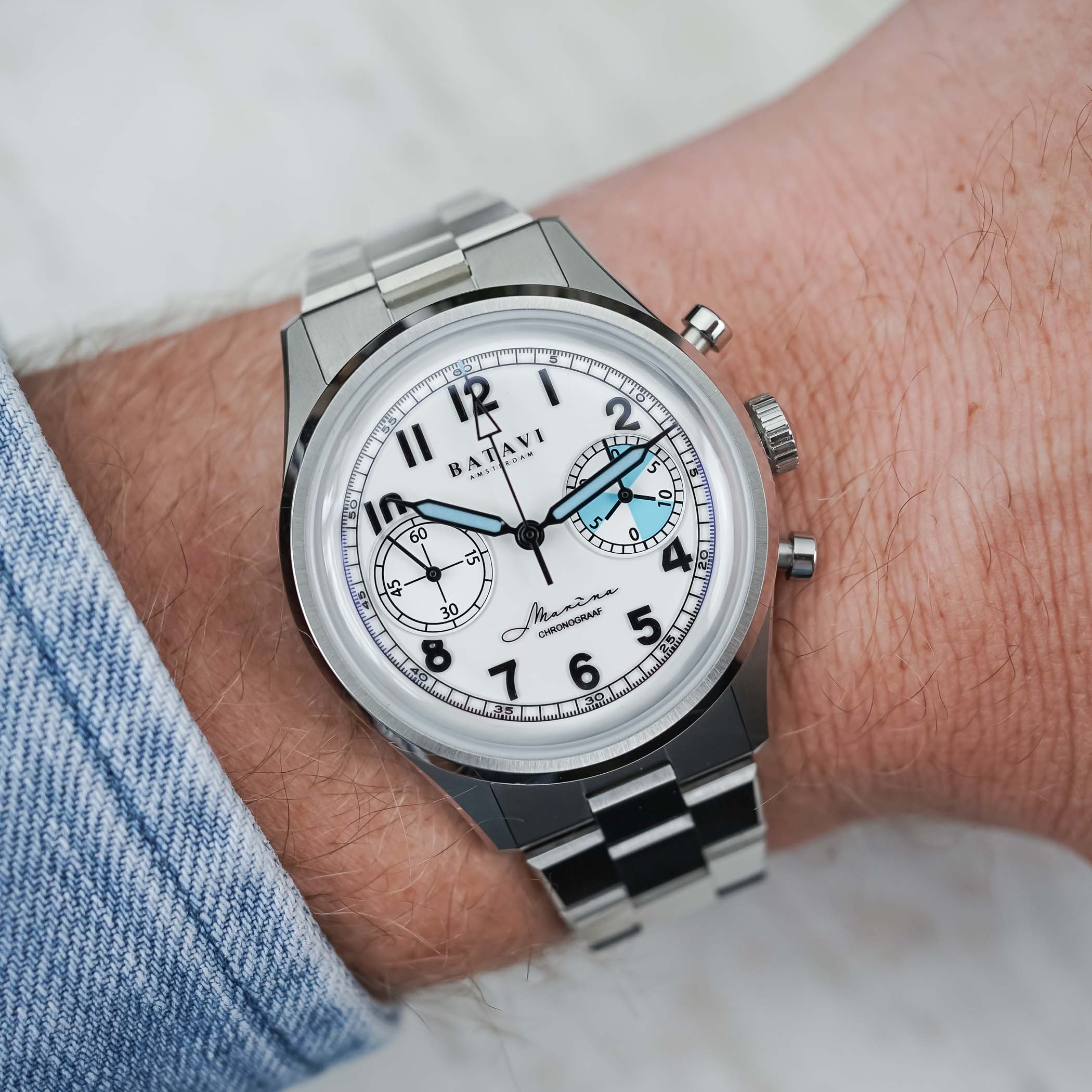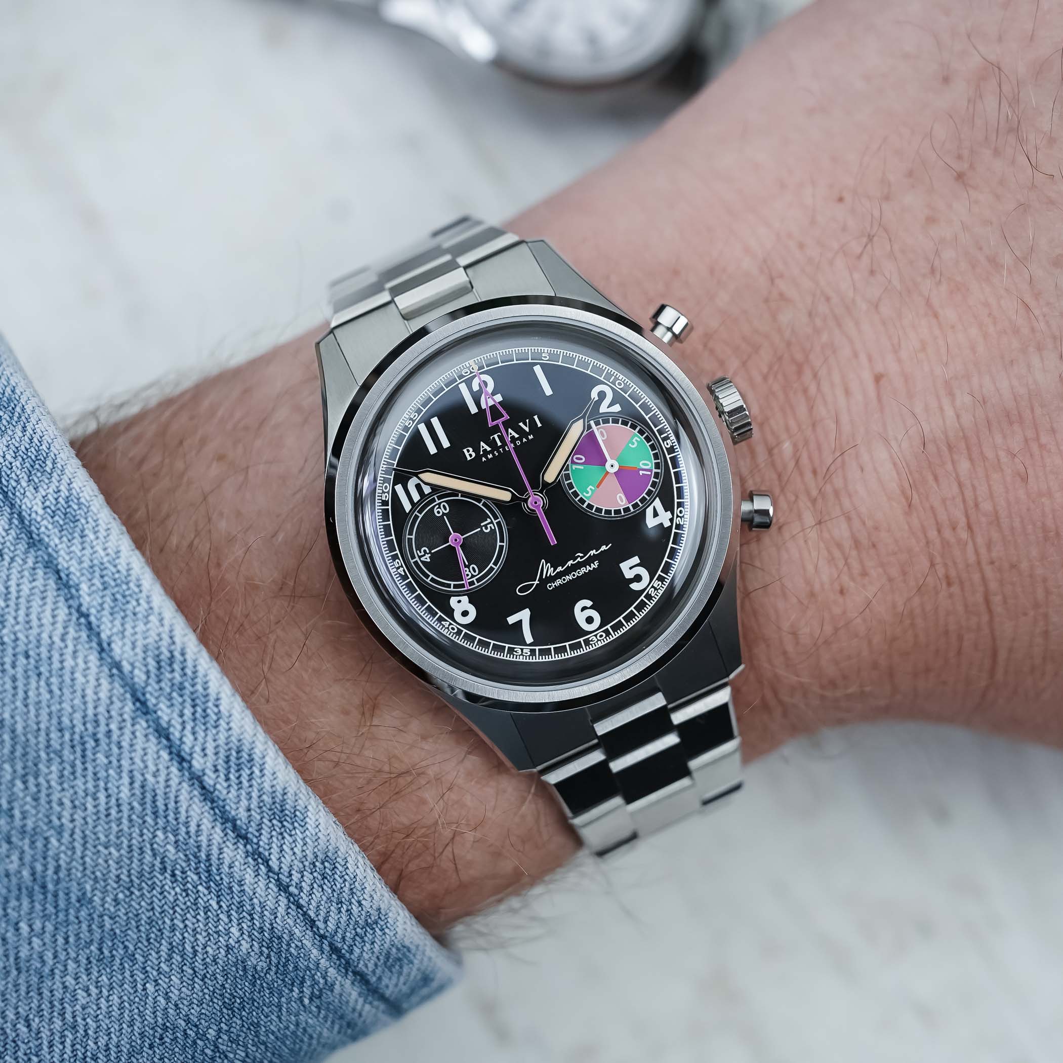 Batavi is a burgeoning microbrand in the Netherlands and no stranger to fresh designs with models like the Atelier and Architect, the latter being a slick integrated sports watch. Style and accessible pricing really define the brand, and the latest Marina Chronograaf collection is no exception. Four bi-compax chronographs with fun nautical colours are perfect for summer days on the water or after-hours beach nightlife, and the attention to detail goes beyond just fresh colourways. Multidimensional dials, compelling finishing and a workhorse column-wheel chrono movement highlight Batavi’s ongoing commitment to affordable excellence.