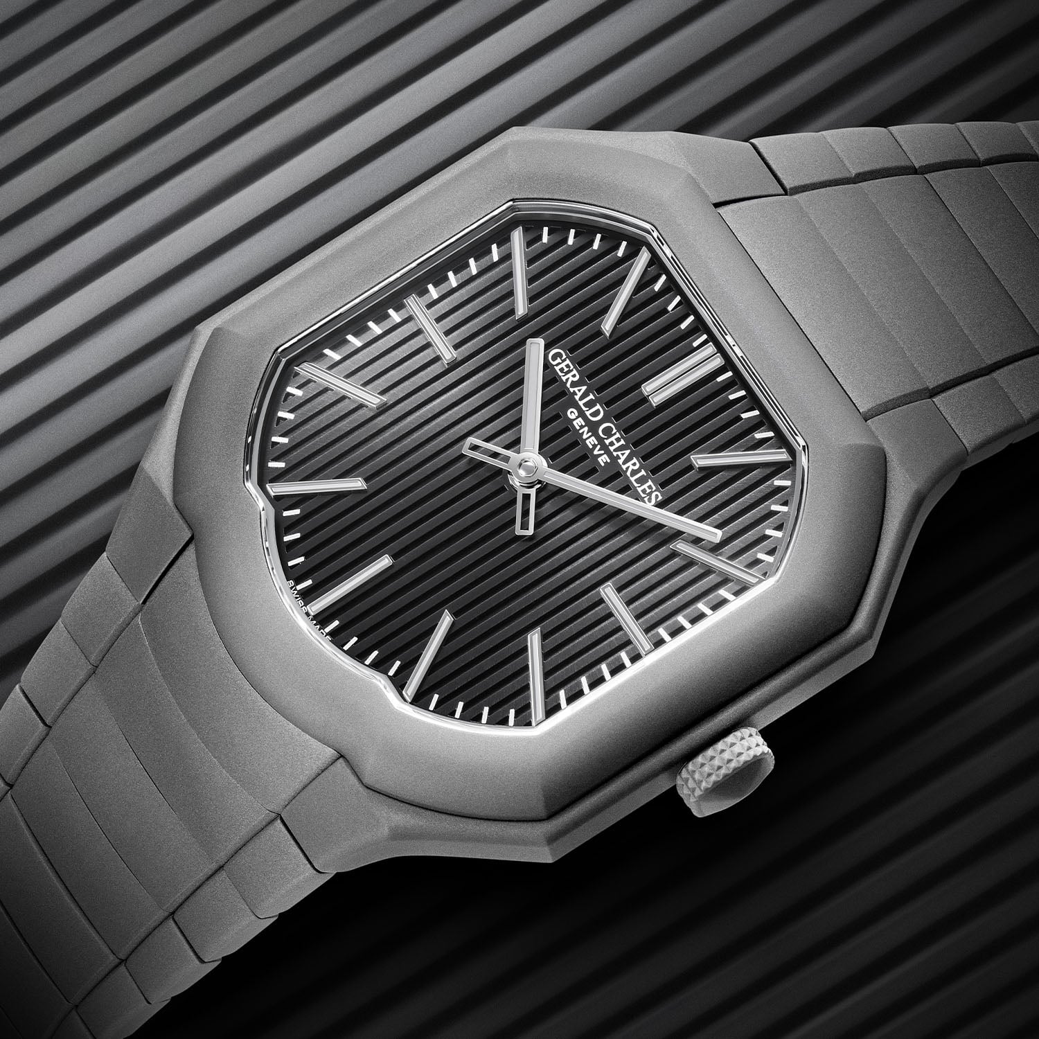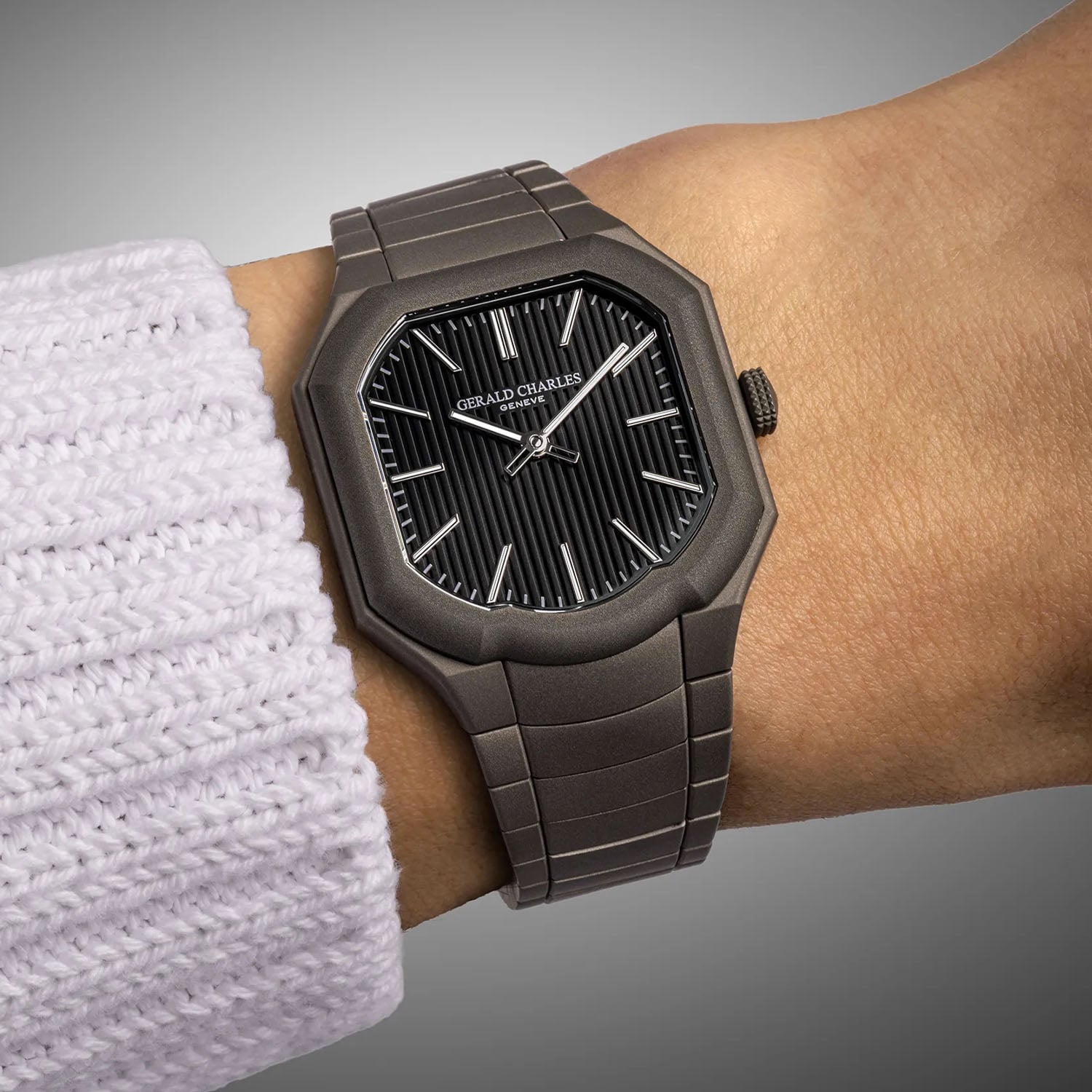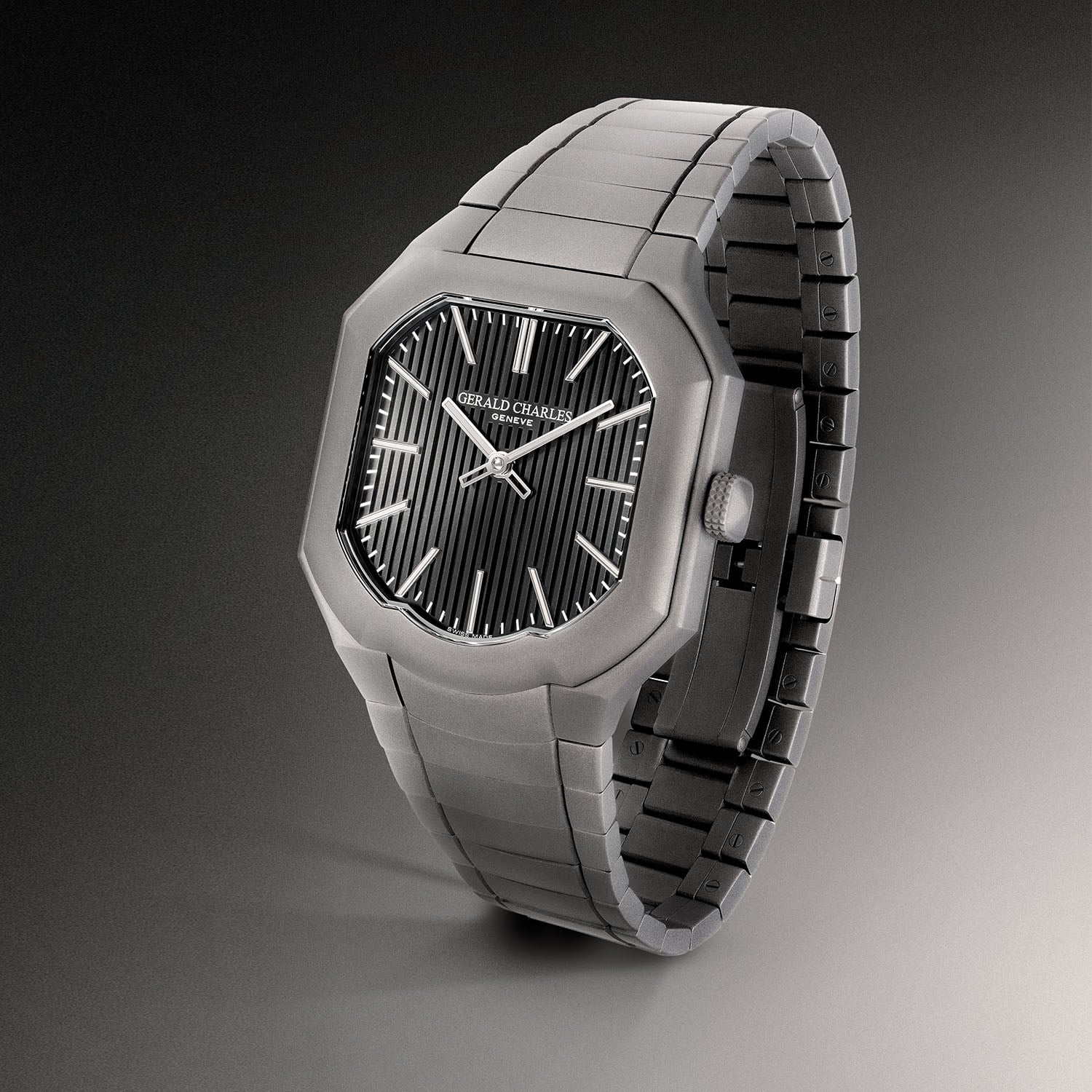 The integrated bracelet is a key element of the design. Made from 316L stainless steel with a darkblast finish, it has a fully concealed construction: hidden screws, integrated pushers and an invisible butterfly clasp. This approach recalls Gérald Genta’s 2007 Sarawak commission, the brand’s first integrated bracelet watch and the conceptual origin of the Masterlink. The Gerald Charles Masterlink Boutique Edition comes with a 5-year warranty; the price is on request.