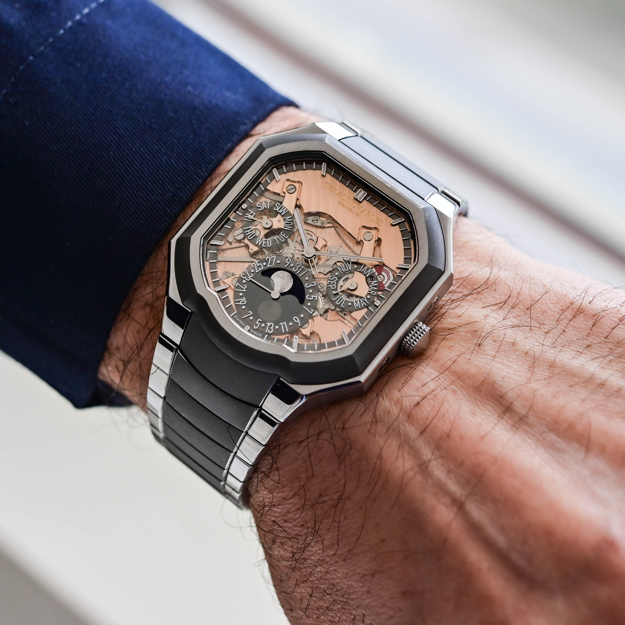 As explained by the brand’s designer, Octavio Garcia, “The Masterlink Perpetual Calendar represents the most advanced expression of the Gerald Charles design language to date. It marks a turning point in the Masterlink collection, where form, function, and movement converge into a single architectural system.”