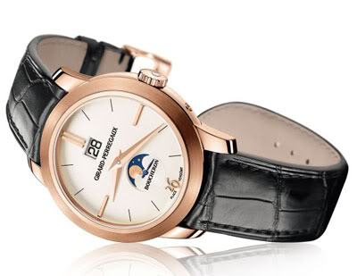 Inside the case is GP’s classic automatic, in-house built calibre GP1800. This 30mm movement has a gold-coloured central rotor. Beating at 4Hz, it boasts a comfortable power reserve of 54 hours and is finished in a pleasant way.