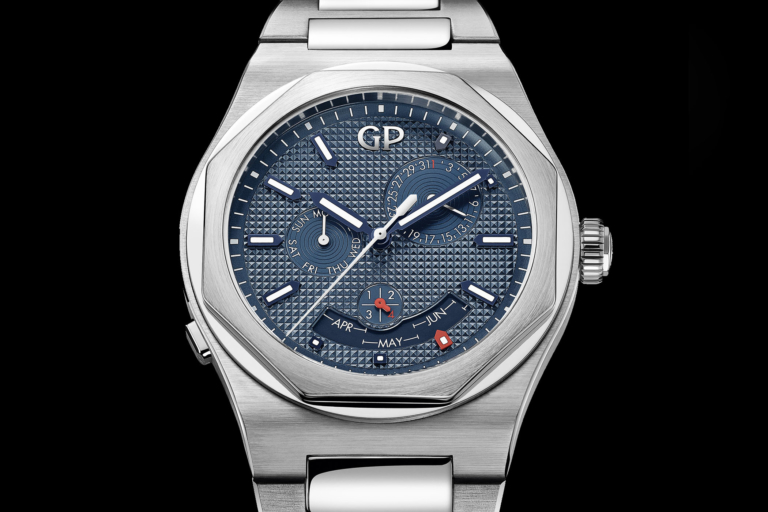 Even though it was only recently re-launched – first in 2016 with limited editions, followed by serial production models in 2017 – the Girard-Perregaux Laureato was, in 1975, amongst the first luxury sports watches along with the 1972 Audemars Piguet Royal Oak and before the Patek Philippe Nautilus. The modern collection sticks to the original concept and design and boasts all the attributes of a luxury sports watch: a shaped stainless steel case; a complex faceted bezel; a textured dial; a thin automatic movement; a relative robustness combined with luxurious elements; and, of course, an integrated steel bracelet. Available in multiple sizes and with numerous movements, the time-and-date 42mm has been chosen by GP and Wempe to create a handsome limited edition with a unique dial.