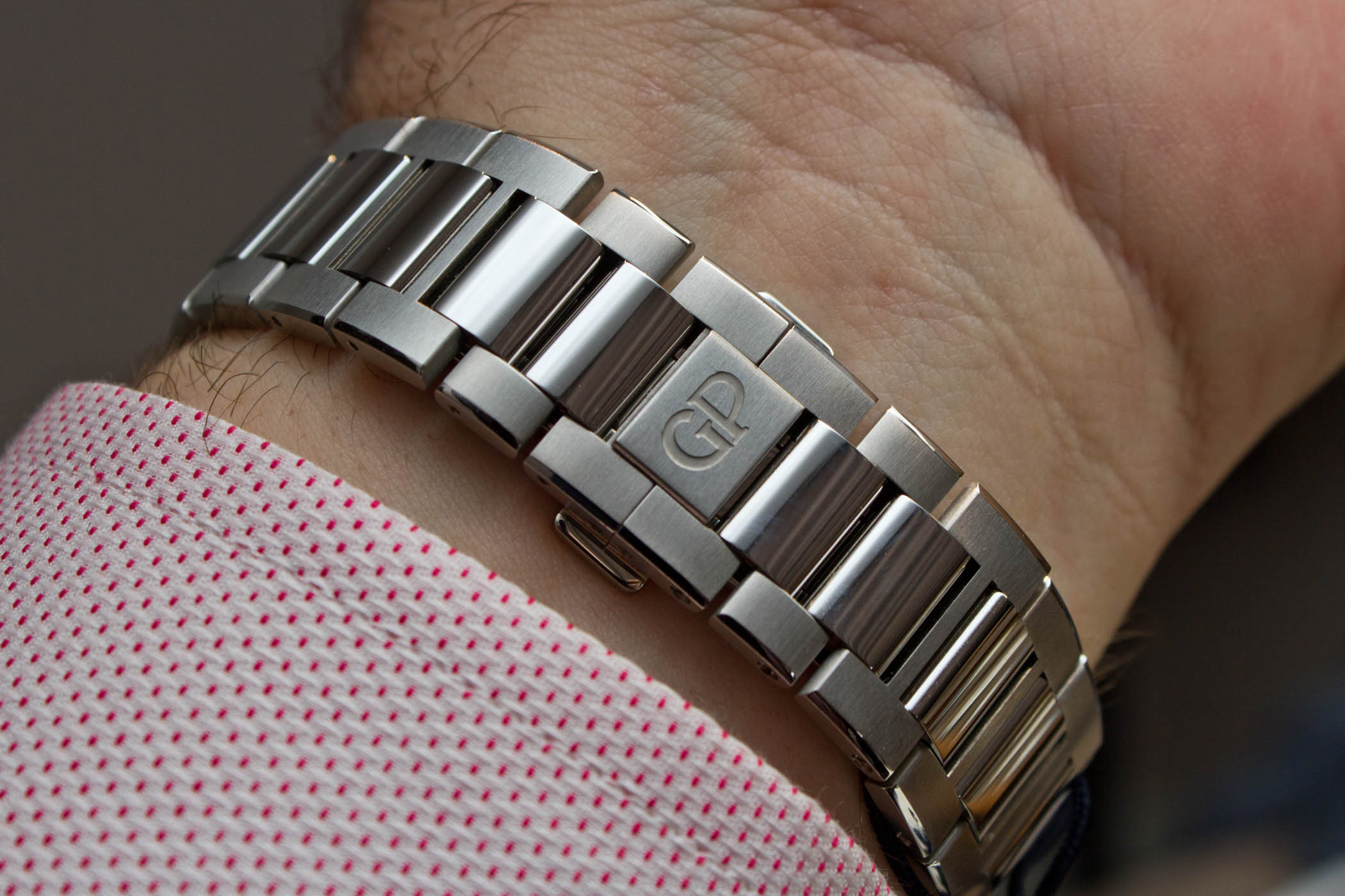 But since durability and resistance to corrosion are only proven over time, and not when we buy the watch, the first impression 904L steel transmits is one of high quality and luxury. Both the case and the bracelet look and feel really good, with a mix of brushed and polished surfaces on par with the quality Girard-Perregaux has always been known for. And since the maximum height is 11.90 mm – on the 42mm version – and only 11.08mm on the 38mm version, that “luxury sports watch” feeling is even bigger. The metal bracelet looks particularly good with those satin-brushed “H’s” on the front and polished edges matching the central links. Comfortable and elegant, and water-resistant up to 100 metres.