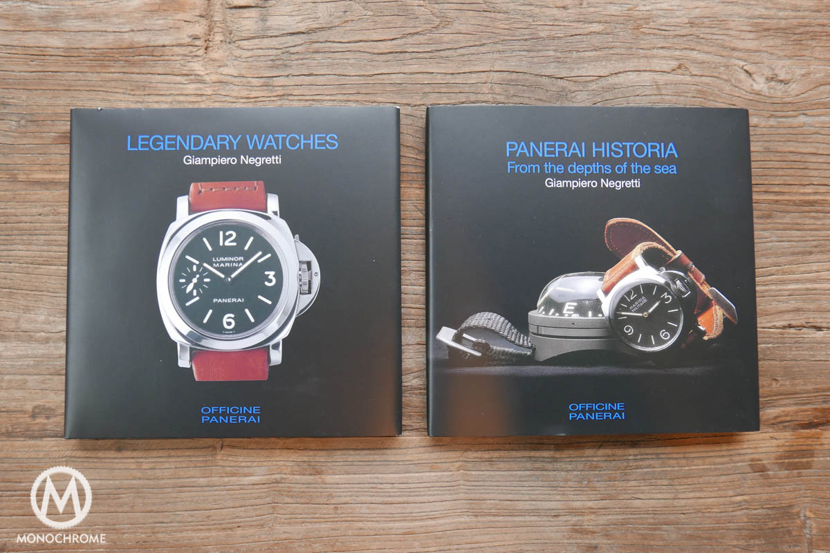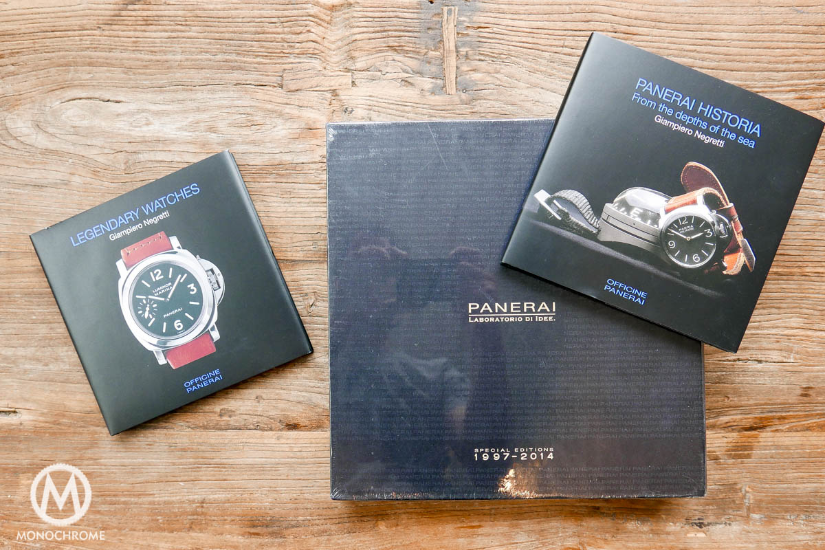 Last in line (due to alphabetical order) is a Panerai goodie bag. It contains a big book about the Panerai Special Edition from 1997 – 2014 and this book shows all great Special Editions and is a must have for Panerai aficionados. The goodie bag also contains two small in size, but great in content, book name “Legendary Watches” and “Panerai Historia”; also must haves for the true Panerai aficionado!