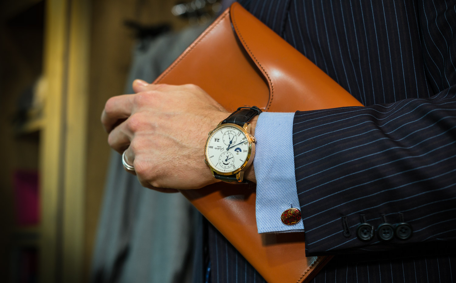 Besides, how you dress determines not only how others perceive you but also how you perceive yourself. A finely tailored suit, just like a carefully chosen luxury watch, can project confidence, integrity and a certain sense of pride. The Glashütte Original Senator Cosmopolite for example makes a statement on the wrist (see here for our in-depth technical review).