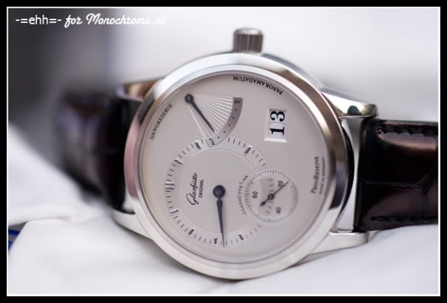 Before dinner we had a nice glass of bubbles in the garden of the College Hotel. Sitting there outside in a nice and quiet place in the middle of Amsterdam was a strange experience. Amsterdam is not one of the most quiet places on earth 🙂 We talked about watches in general, the watch industry and of course the all new collection Glashütte Original presented at Baselworld this year. And while talking we got the chance to see them all. My absolute favorite… the Senator Chronometer.