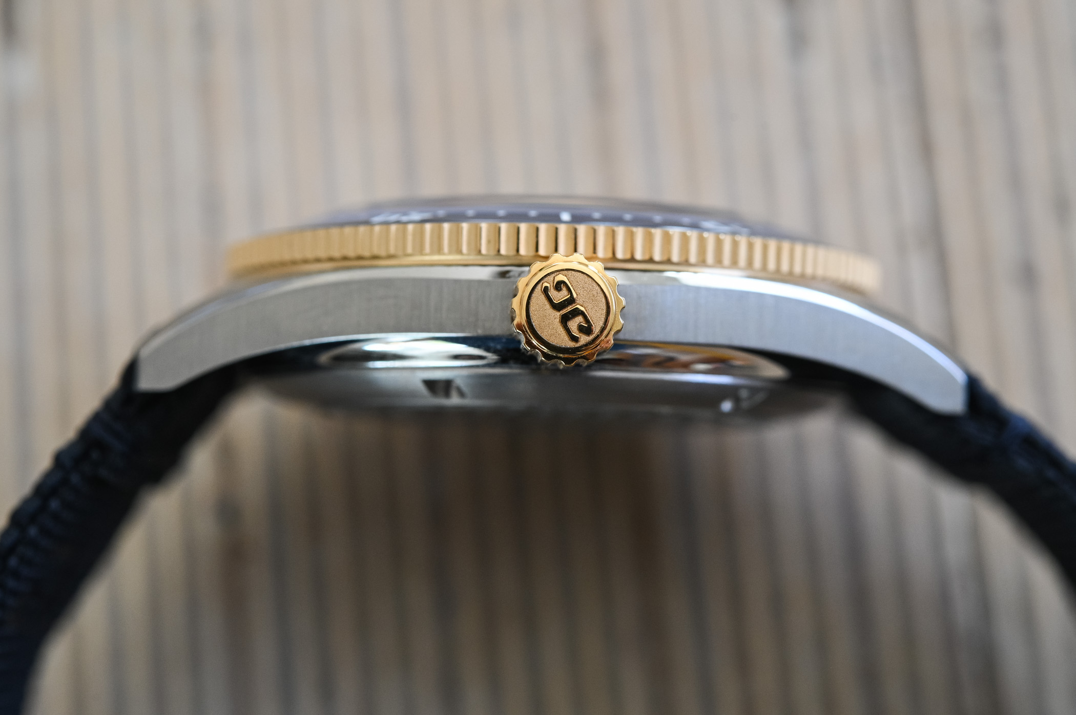 Smaller watch doesn’t mean lower specifications here. Indeed, the SeaQ Bicolor, despite being a slightly more luxurious edition, doesn’t overlook diving requirements. Thanks to its screw-down crown, its screwed caseback and multiple other features that are necessary on dive watches, it still passes the rigorous DIN 8306 and ISO 6425 tests required for certification as a professional diver’s watch, and thus meets both German and international standards of quality. Water-resistance is rated at 200 metres.