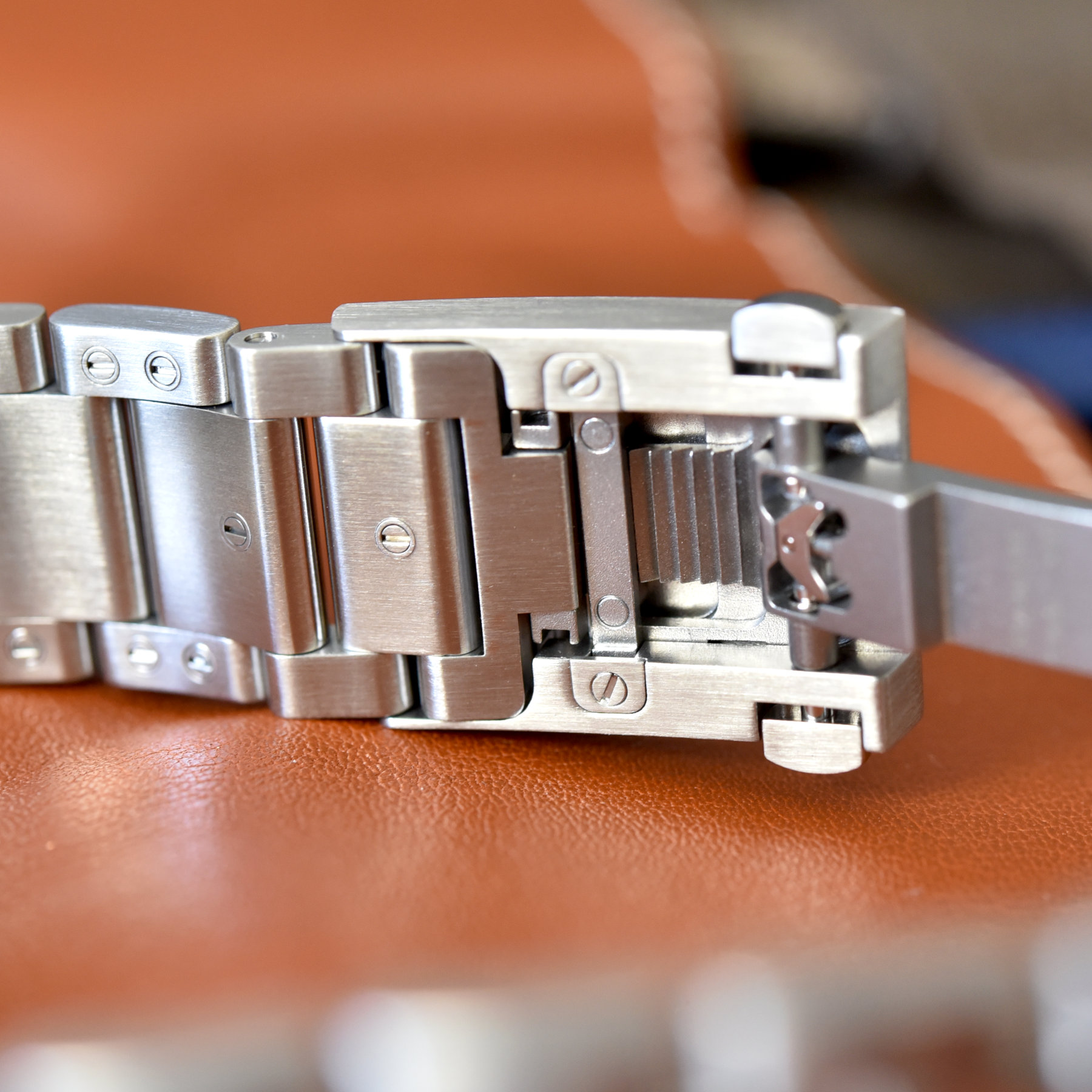 The Glashütte Original SeaQ Panorama Date Reed Green comes with a choice of straps. There’s the option for a black rubber strap or grey textile straps, both of which can be worn on a pin buckle or fold-over clasp. And of course, there’s the steel bracelet, which has a fine-adjustment system cleverly hidden in the clasp. Push down on the “GG” logo, and you get an extra 7.5mm or so to play with. It’s available from March 2022, through all Glashütte Original Boutiques and selected retailers worldwide. The price is set at EUR 11,000 on black rubber or grey textile strap. If you want the steel bracelet, the SeaQ Panorama Date Reed Green will set you back EUR 12,200.