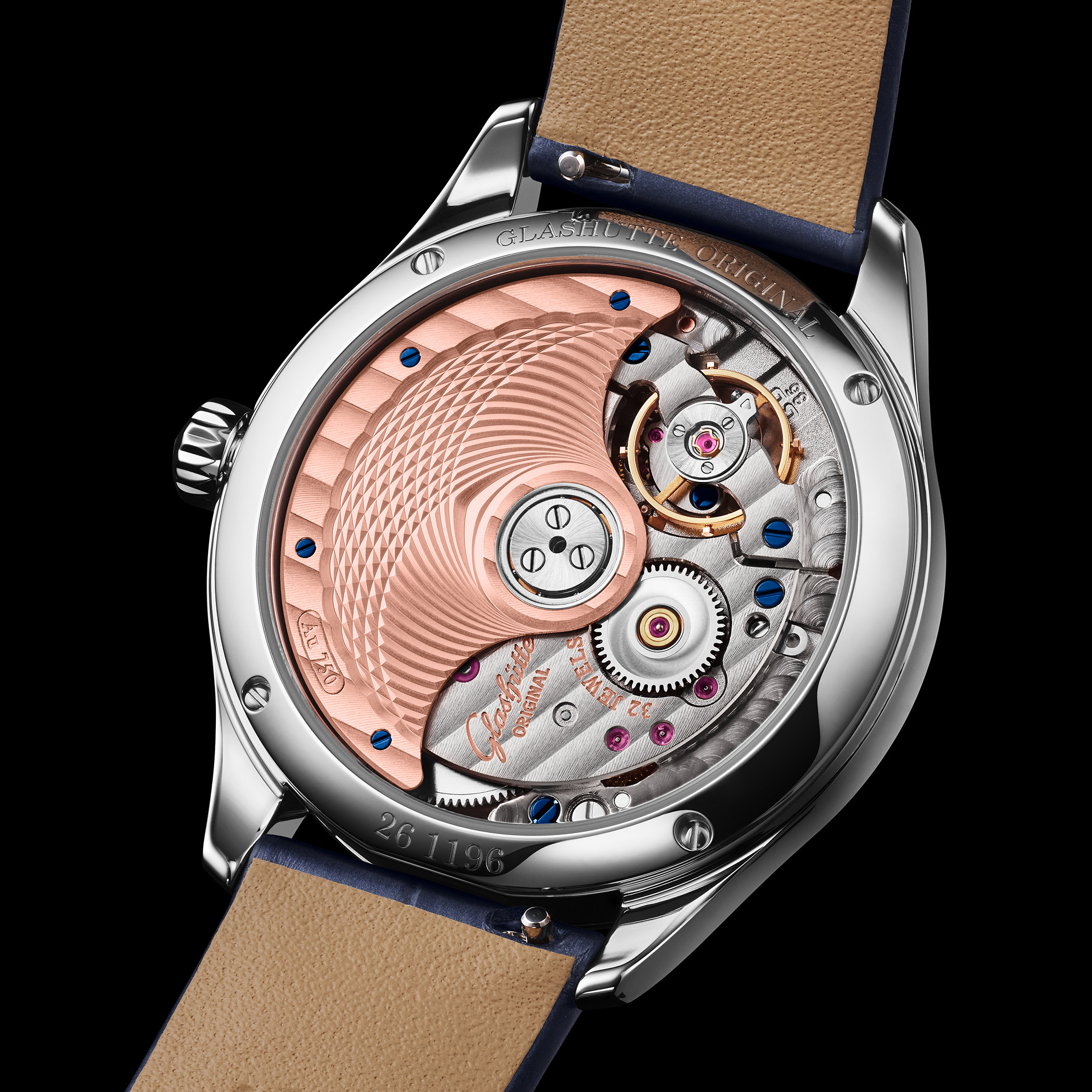 Not just a pretty face, the Serenade Luna is powered by the in-house automatic calibre 35, developed by Glashütte Original to fit inside its small case. With a thickness of just 3.8mm, the movement with integrated moon phases has a large barrel to provide a 60-hour power reserve. Visible through the transparent caseback, the movement reveals hand-finished decorations, including the stripes on the signature Glashütte three-quarter plate, bevelled edges, polished and blued screws and the solid red gold rotor with its seashell pattern.