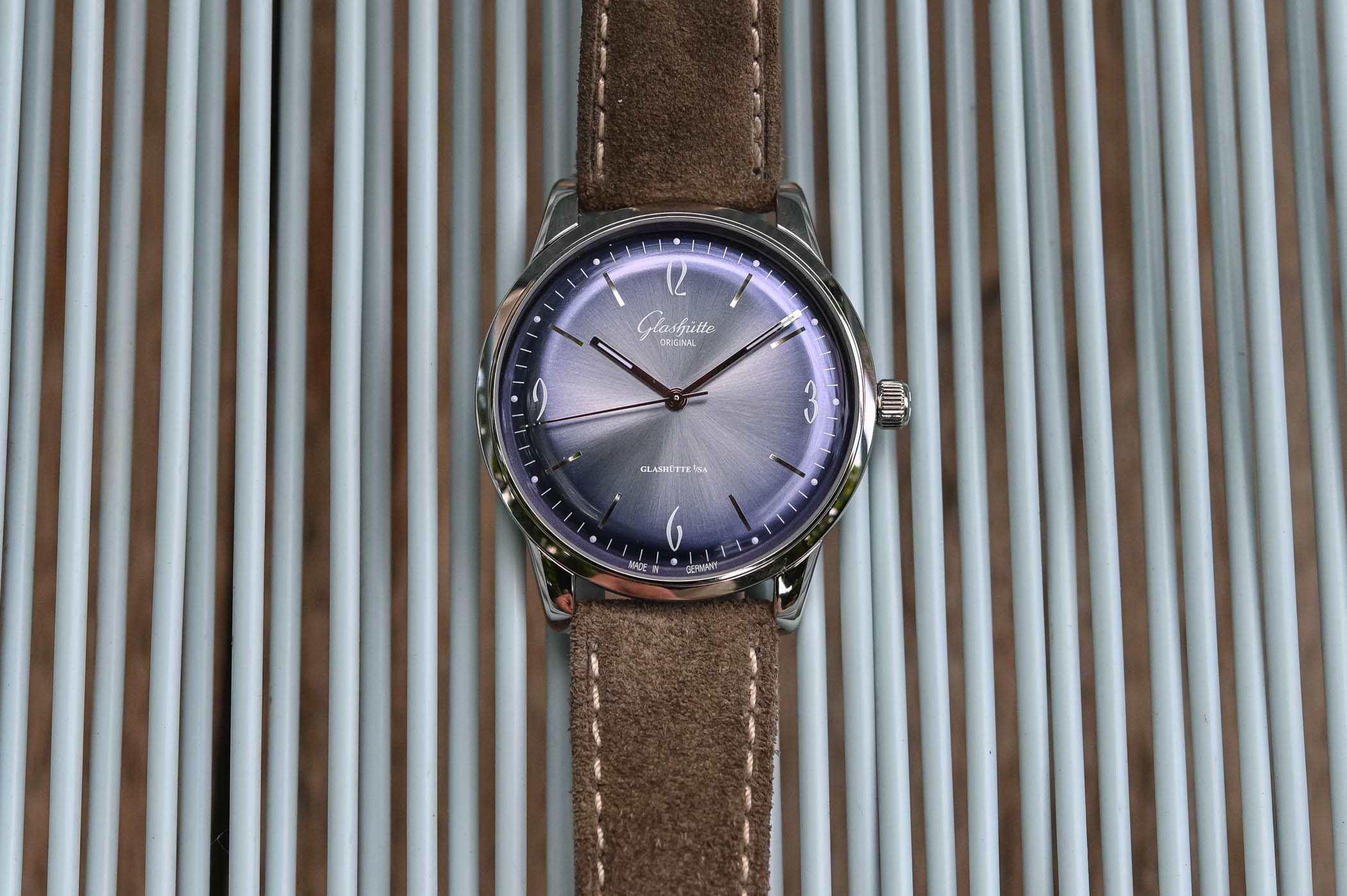 This is one of the first times I’ve seen professional photos of their ‘blue’ dial showing that lilac/amethyst colour. It was the main reason I sold my Seventies Panorama Date a couple of years back, as I expected to see the blue that was advertised more often, but 90% of the time in various light it was lilac. I thought maybe they pfuked mine up in Pforzheim, but no it appears to be intentional.