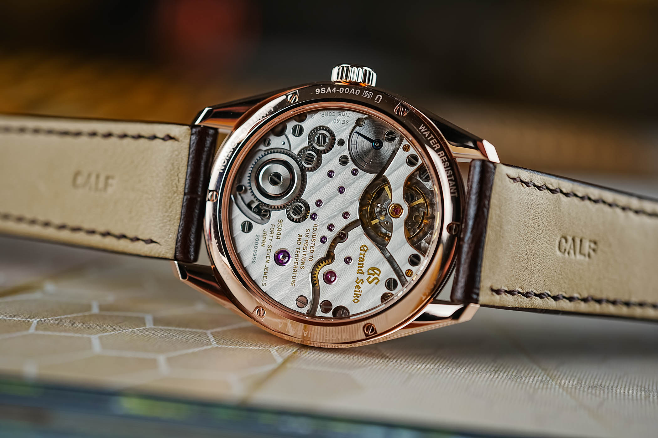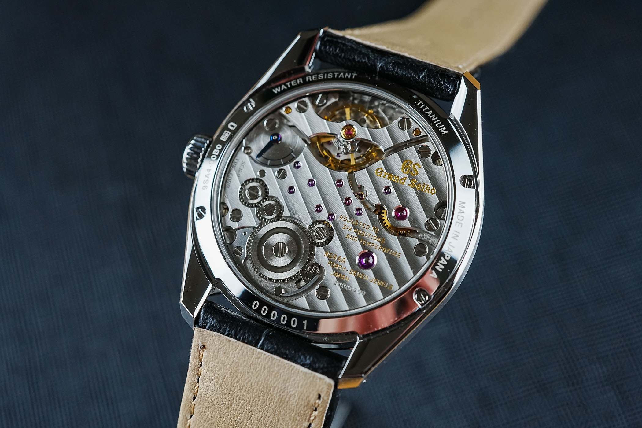 Turning the watch over reveals an element of importance: the new hand-wound, hi-beat calibre 9SA4. Developed on the base of the automatic 9SA5 found in many recent Grand Seiko watches, it still incorporates the brand’s innovative Dual Impulse Escapement (an exotic escapement presenting similarities with the Audemars Piguet or the Omega Co-Axial escapements, for example) beating at a high-frequency of 5Hz (36,000 vibrations/hour) as well as its twin-barrel architecture guaranteeing a solid 80-hour power reserve. Its accuracy is given for -3/+5 seconds per day.