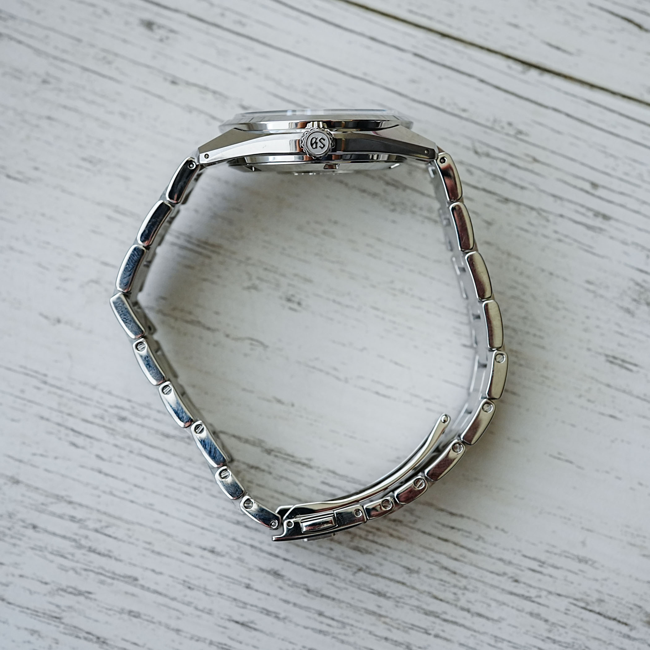 As for the design of the SBGW297 and SBGW299, this new duo utilises one of the most emblematic shapes of GS, that of the 1967 reference 44GS – a.k.a the watch that introduced the brand’s design bible: the Grammar of Design. Edgy, sharp and highly distinctive, this stainless steel case is composed of large flat-polished (with Zaratu distortion-free technique, of course) shoulders, a razor-like profile and a thin polished bezel. The mirror-like elements alternate with hairline brushed surfaces, both meeting in straight edges. The 100m water-resistance is a good feature and the back is closed.