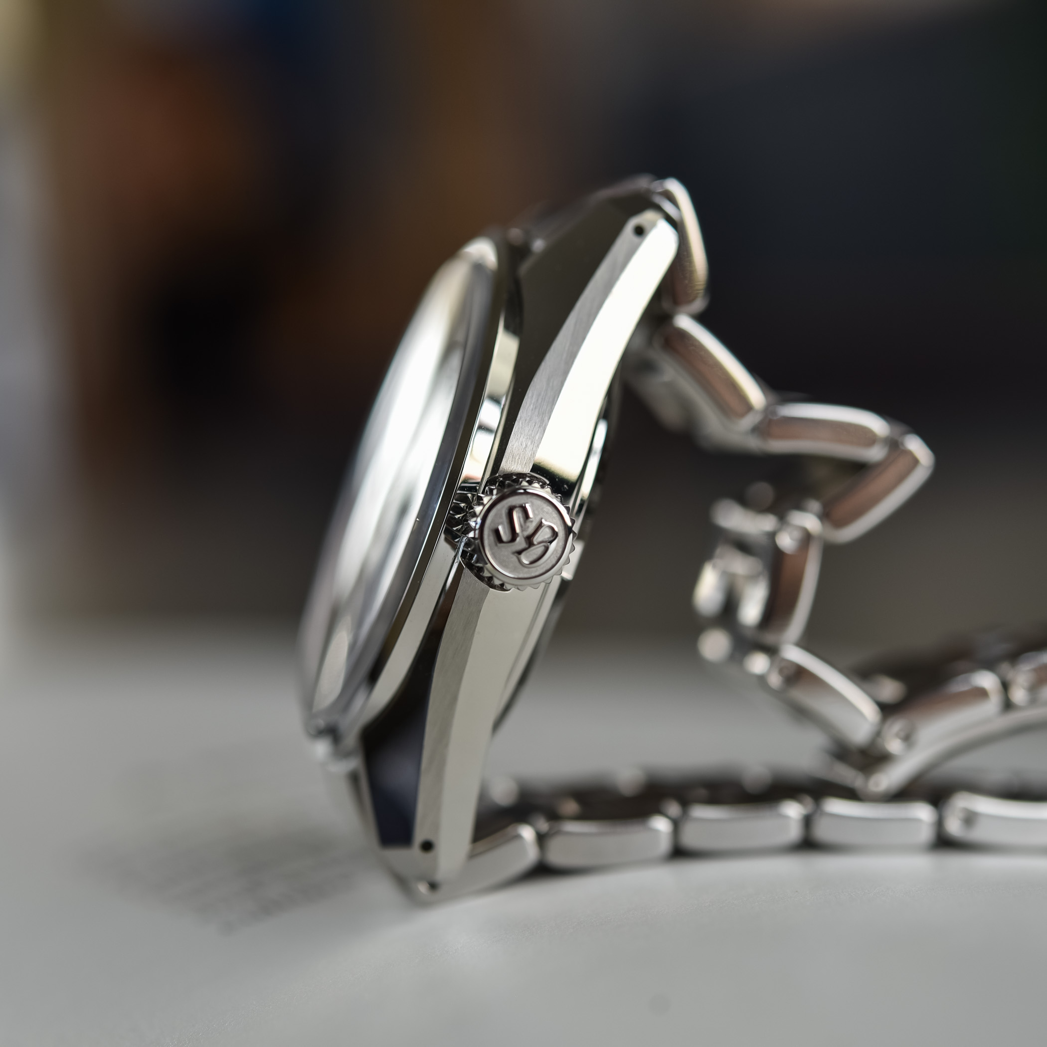 What’s new, however, in this SLGH013 is the use of Ever-Brilliant stainless steel… but not only for the case, as the bracelet also relies on this specific material, which is a first for a Grand Seiko watch from the standard collection. As a reminder, Ever-Brilliant steel is a high-grade alloy with a brighter tone, a high level of corrosion resistance and better durability. It results in a watch with great lustre and shine, which is even reinforced by the splendid polished parts all around the case.