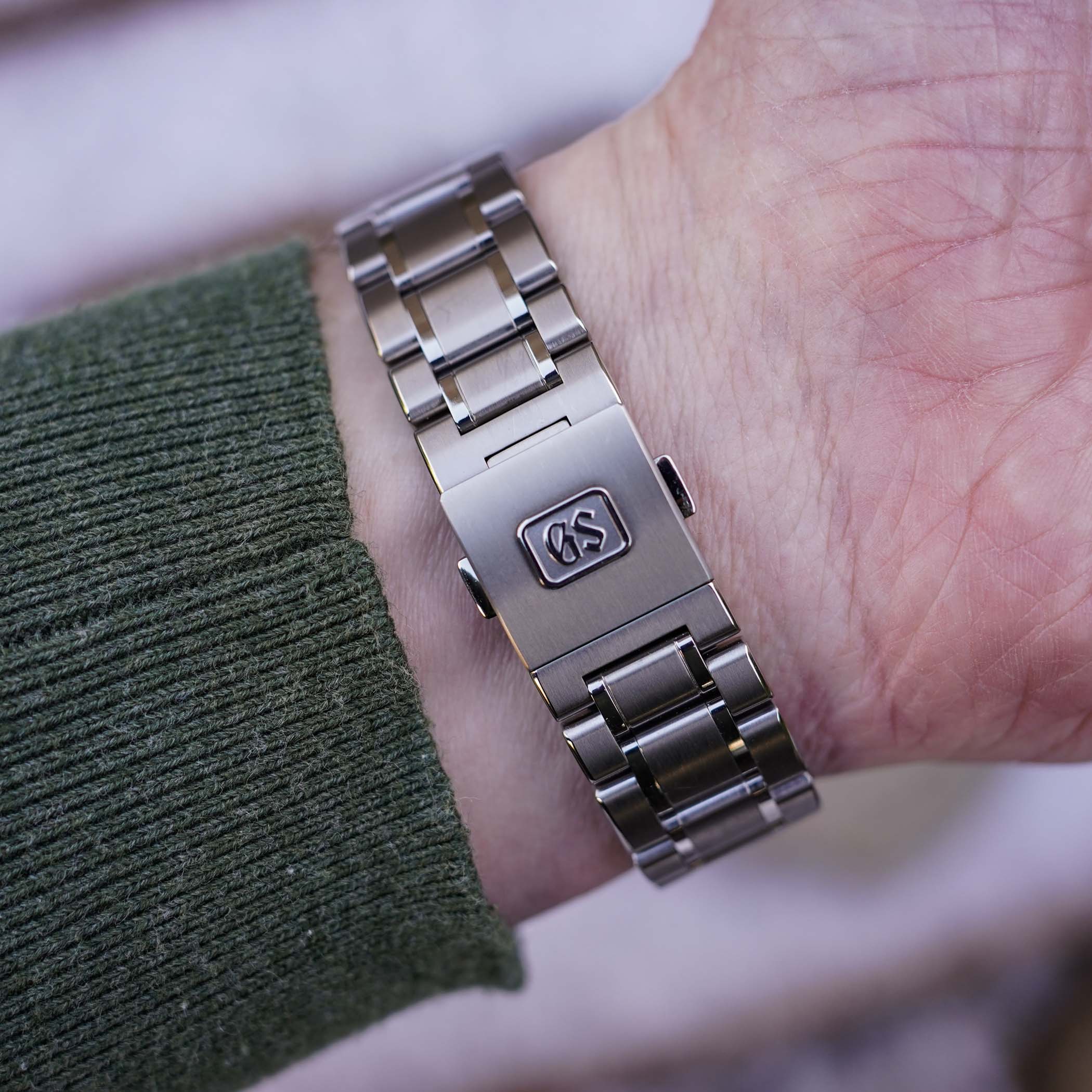 The use of titanium brings lightness and comfort, as well as a slightly muted colour, yet with great shine on polished parts. With this reduced diameter, the SBGH341 and SBGH343 are highly wearable and, as a mid-size offering, it could easily fit both genders. Both versions are topped by a box-shaped sapphire crystal and offer a comfortable 100m water-resistance. The titanium attire continues on the bracelet, which is a classic design of the brand, and is closed by a folding clasp (still no micro-adjustment).