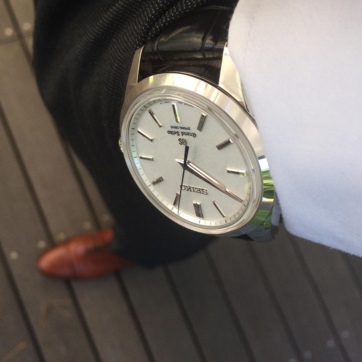 During this trip I was wearing my old Seiko Lord Marvel from 1967. Interesting detail, Seiko launched its hi-beat movement in a Lord Marvel 36,000 in 1967. My old watch showed a lot of resemblance to the brand new Grand Seiko Spring Drive 8-Days and I kind of fell in love with it. The exact same looks, similar case, dial and hands design, however in a more contemporary size. My old one measures 35mm. This new one measures 43mm in diameter and is 13.2mm thick. Despite these rather impressive measurements plus the use of platinum (which is quite heavy due to a very dense structure), it wears very pleasant on the wrist and does not feel too big or too thick.