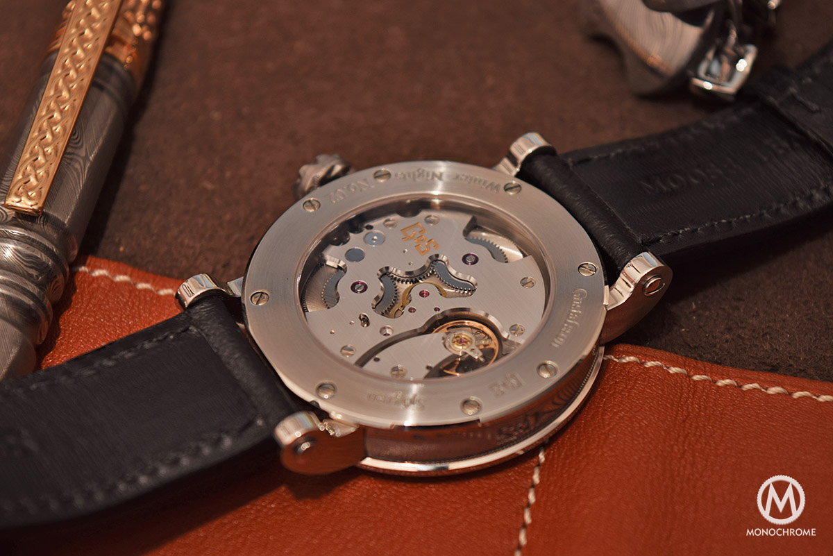 The new type movement really is a step up for Gustafsson & Sjögren, and with the added bonus of Damascene steel bridges as a possible upgrade, you get something very special. Each Gustafsson & Sjögren comes in a wooden presentation case – which is also handcrafted. The Winter Nights is available as you see in the pictures or in a bicolor version with a gold case (formerly known as the Nordic Seasons Gold) and intended to be produced in a run of 25 pieces, regardless of the chosen version.