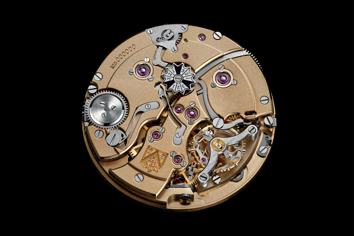 - Dial: Solid 18-carat gold, hand-crafted fumé dial with sunburst pattern. Solid 18-carat gold appliqué indexes and hands. Month indicated with a small arrow-shaped centre hand. Sub-dial for seconds. Big date display at 3 o’clock with centred numerals