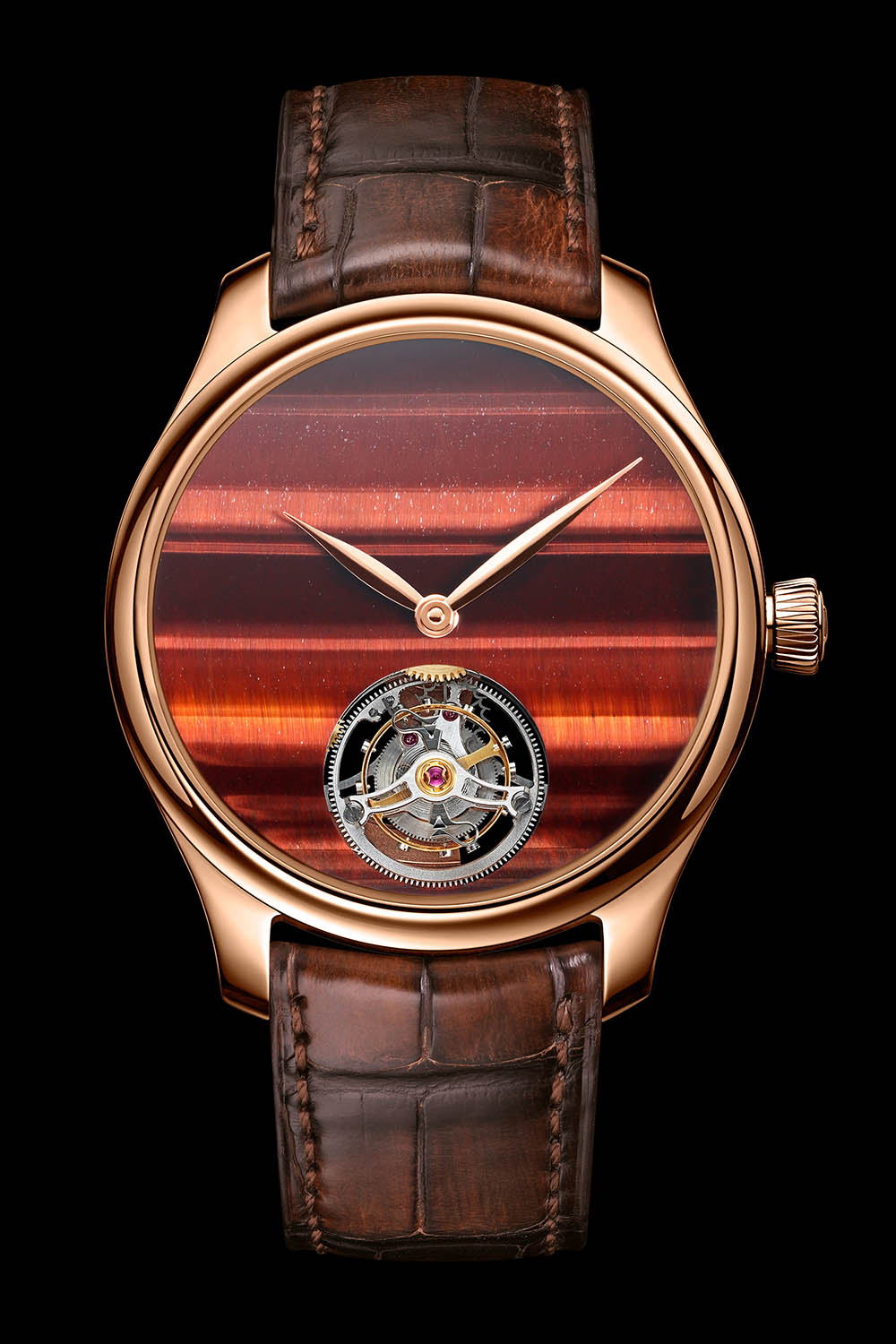 A limited edition of 50 pieces per colour, the H. Moser & Cie. Endeavour Tourbillon Concept Tiger’s Eye, will be priced at CHF 69,000.