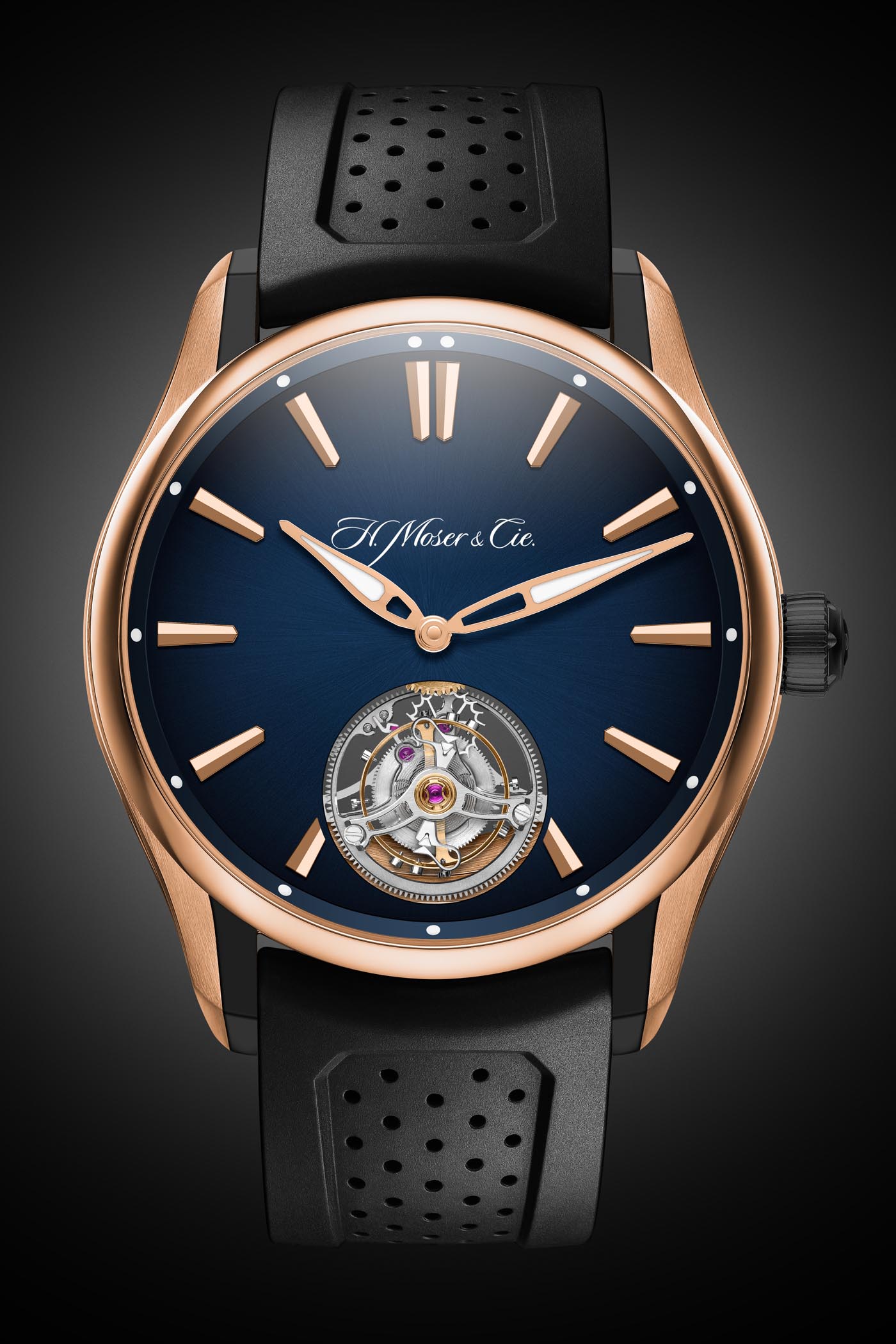 H. Moser & Cie. Pioneer Tourbillon and Centre Seconds with Red Gold/DLC Case and Blue Fumé Dial