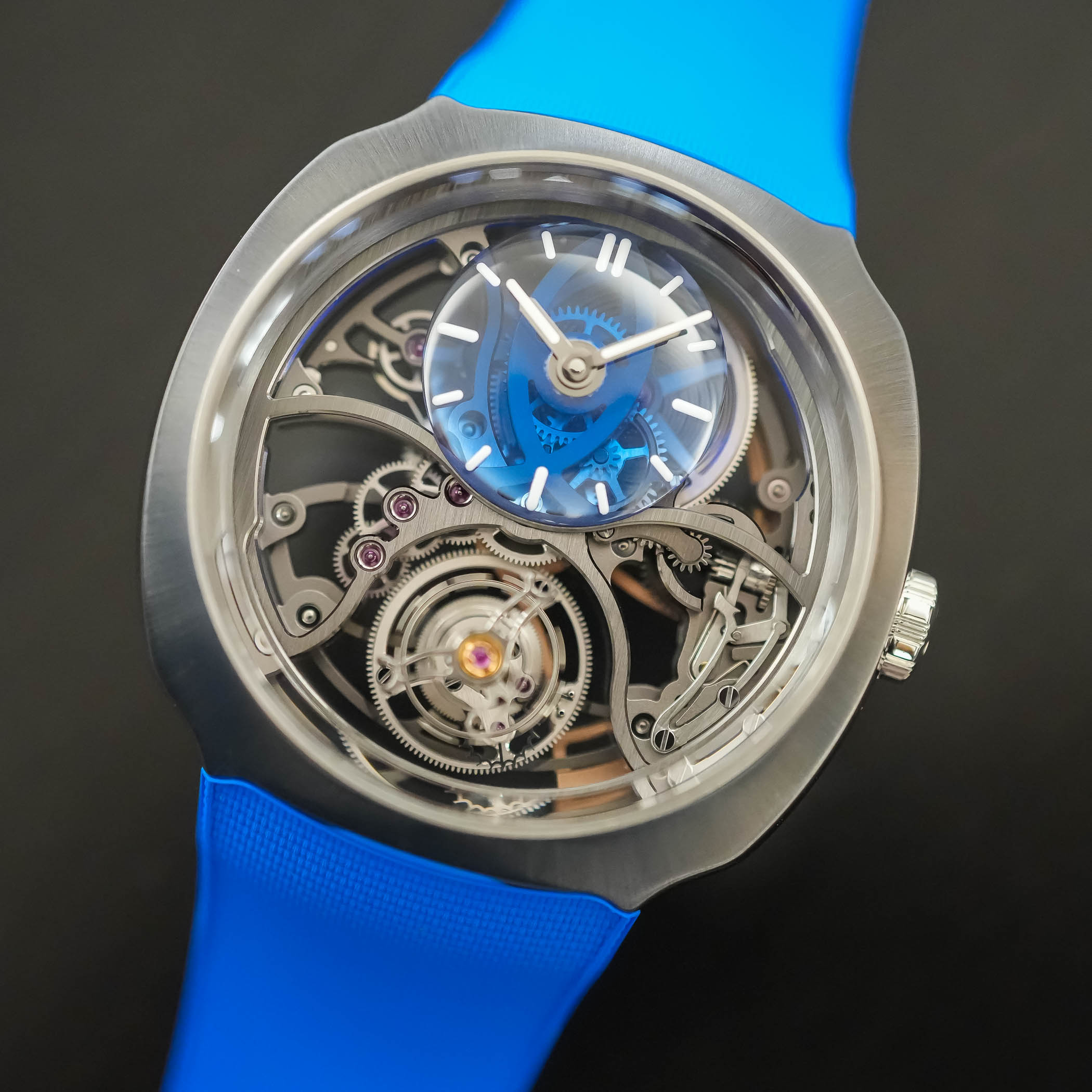 Unless you were on the board of H. Moser & Cie. or an insider on the F1 circuit, not many of our readers would have guessed that Moser would become the timekeeping partner of Alpine Motorsports (ex-Renault). Announced earlier this year, the collaboration extends to all disciplines associated with Alpine Motorsports, from F1 to endurance racing. Today, the first signs of the partnership materialise on board the Streamliner Cylindrical Tourbillon Skeleton Alpine Limited Edition, a fascinating, souped-up skeletonised model that understands its partner’s passion for high-performance mechanics.