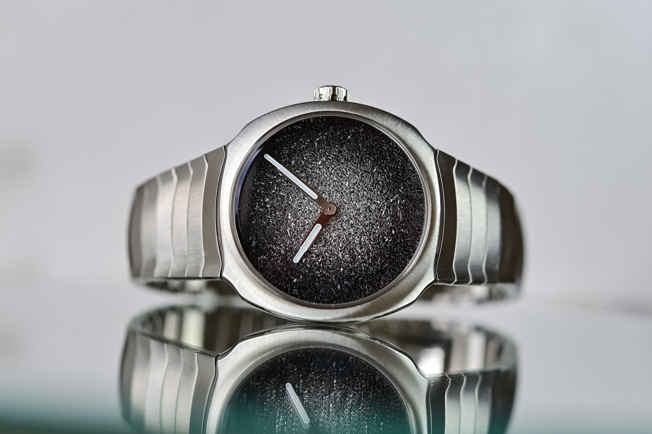 Small and mini case sizes with frosted fumé dials expand the Streamliner’s reach.
