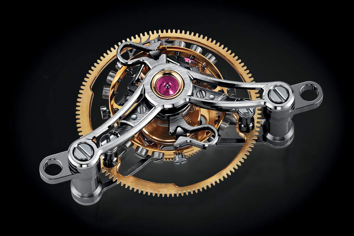 Inside the Venturer Tourbillon Dual Time ticks an in-house movement, the calibre HMC 802. Alongside the anti-gravity escapement (a first for H. Moser & Cie), it also comes with several of the usual Moser’s features. First, Moser decided to use the Straumann Double Hairspring, well known both for being highly complicated to adjust and for bringing a very high level of accuracy. In the context of a tourbillon, we can believe that the accuracy, within a day of worn, will be excellent – if finely adjust of course. Furthermore, the Venturer Tourbillon Dual Time includes the Moser Interchangeable Tourbillon Module, that facilitates servicing by removing the whole module. The module is assembled and regulated independently of the movement, with a simple “plug- and-play system”.