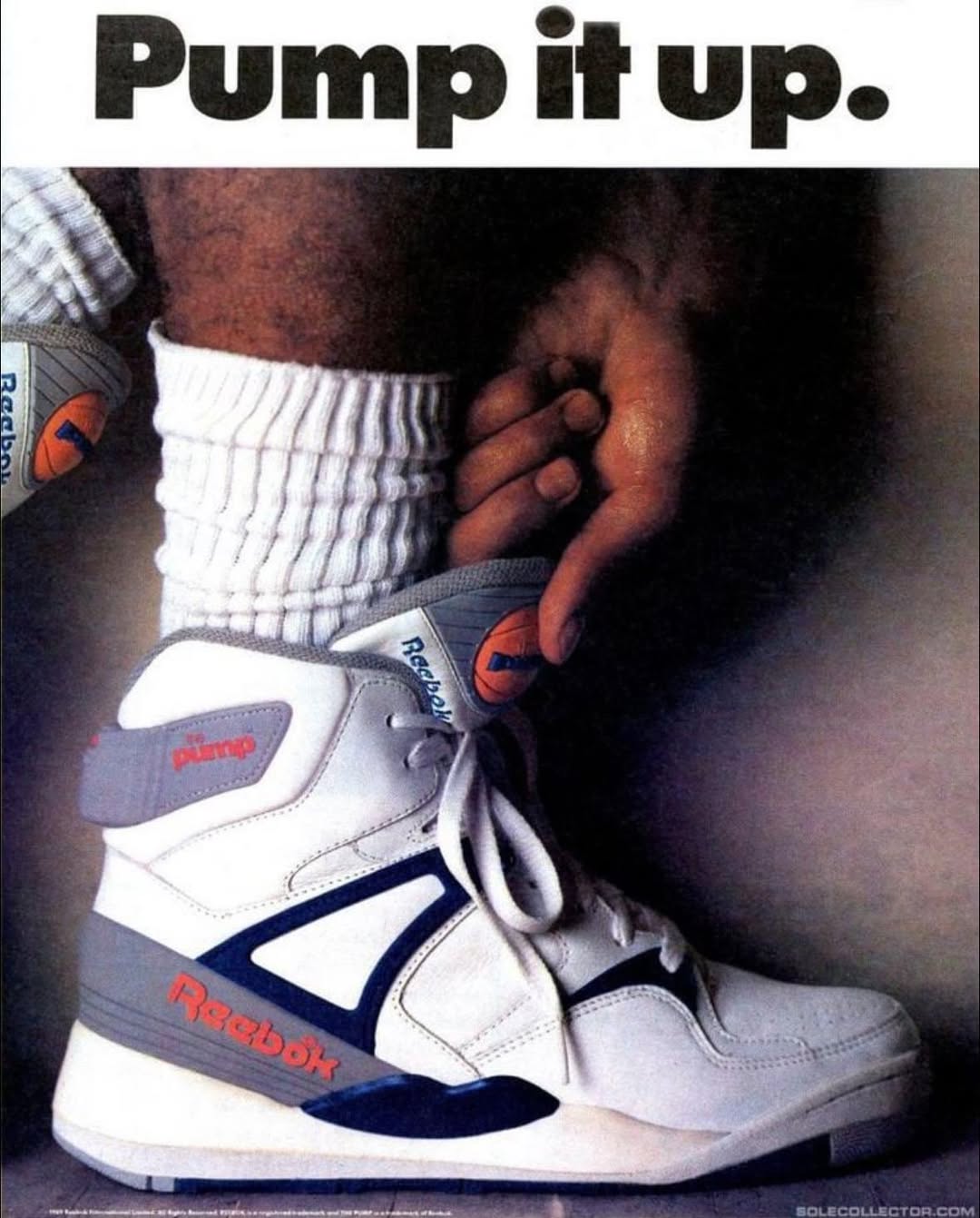 Reebok’s Pump sneaker, launched in 1989, revolutionised footwear and became a cultural phenomenon, thanks in part to NBA stars like Dee Brown, who famously pumped his Reebok Pump high-tops before each dunk in the 1991 Slam Dunk Contest. Fitted with inflatable chambers for a customised fit and superior support to reduce injuries during dynamic sports like basketball, Reebok’s innovative Pump was activated by a circular, basketball-shaped pusher on the tongue.