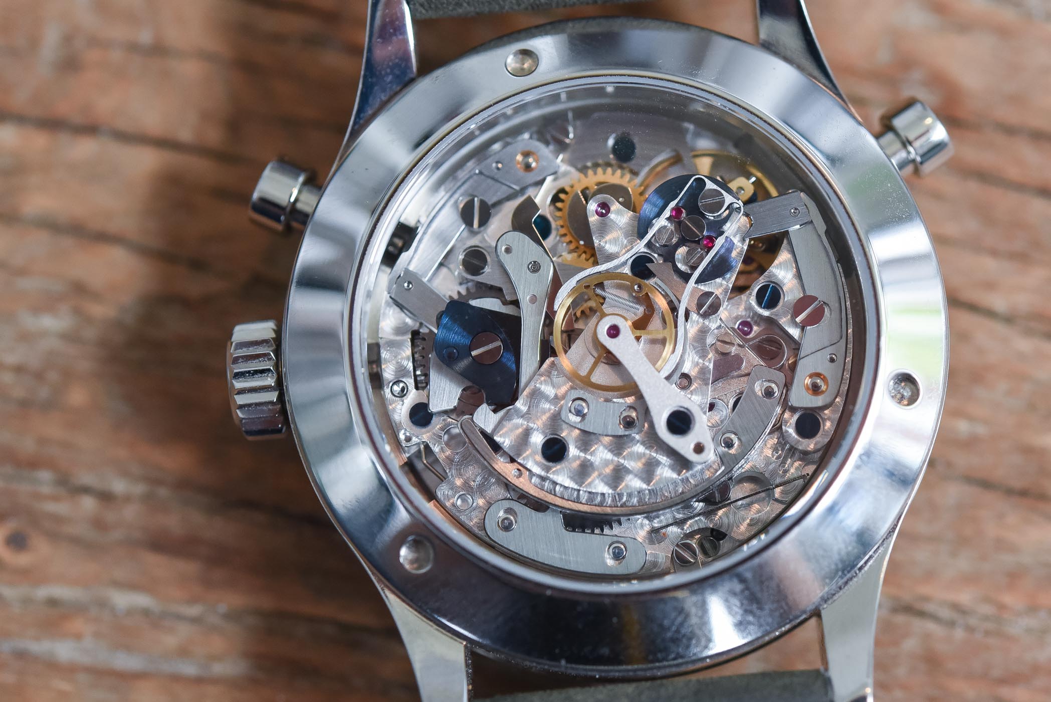 On the other hand, this movement differs on many points. The base movement itself – as you can see in our review of the 3-hand Felix – uses a specific 3/4 plate and has a much slimmer profile than the 7750 or its 3-hand variants. Also, the finishing and decoration are entirely different. Technically, the A11 calibre uses an anti-magnetic escapement as well as a KIF anti-shock system (usually Incabloc on Valjoux) as well as the manual assembly of anchors, the counting of hairsprings and the manual production of movement wheels. As for the specifications, nothing very surprising here with its 4Hz frequency and 48-hour power reserve (even though Habring uses a different mainspring). Overall, if the roots of the 7750 are still present, the calibre A11 is a widely improved version, with evolutions and upgrades on most parts. Furthermore, it is good to know that most of the parts are produced by Richard and Maria, or by local suppliers – also located in Austria.