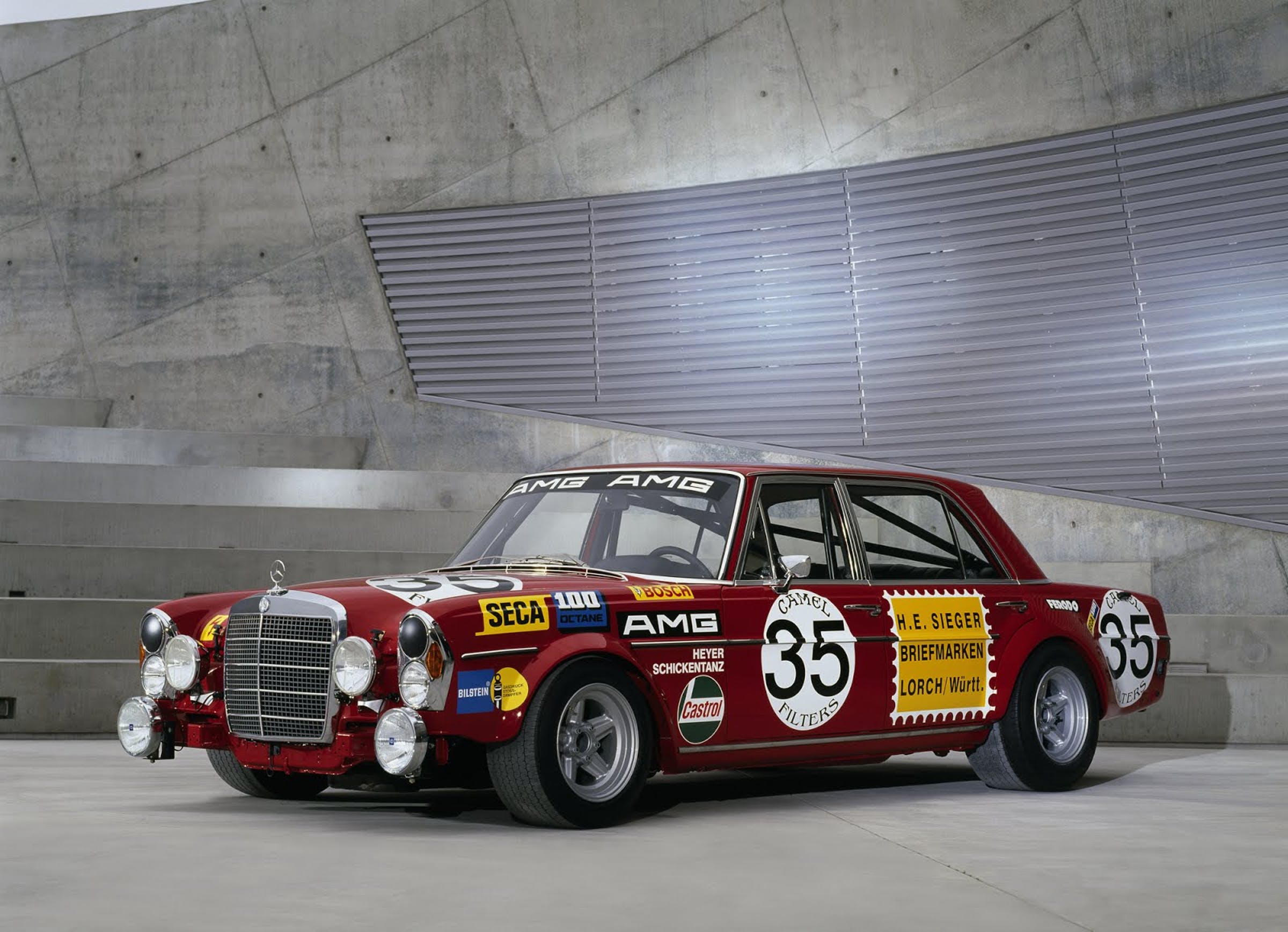 The first ever milestone AMG car was a big red saloon powered by a hefty V8 that slew just about anything it came up against. Winning its class in the 1971 Spa 24 Hours in Belgium, and coming in second overall, it was a formidable opponent for the smaller, more nimble racers of the era, cementing AMG’s capabilities almost immediately.
