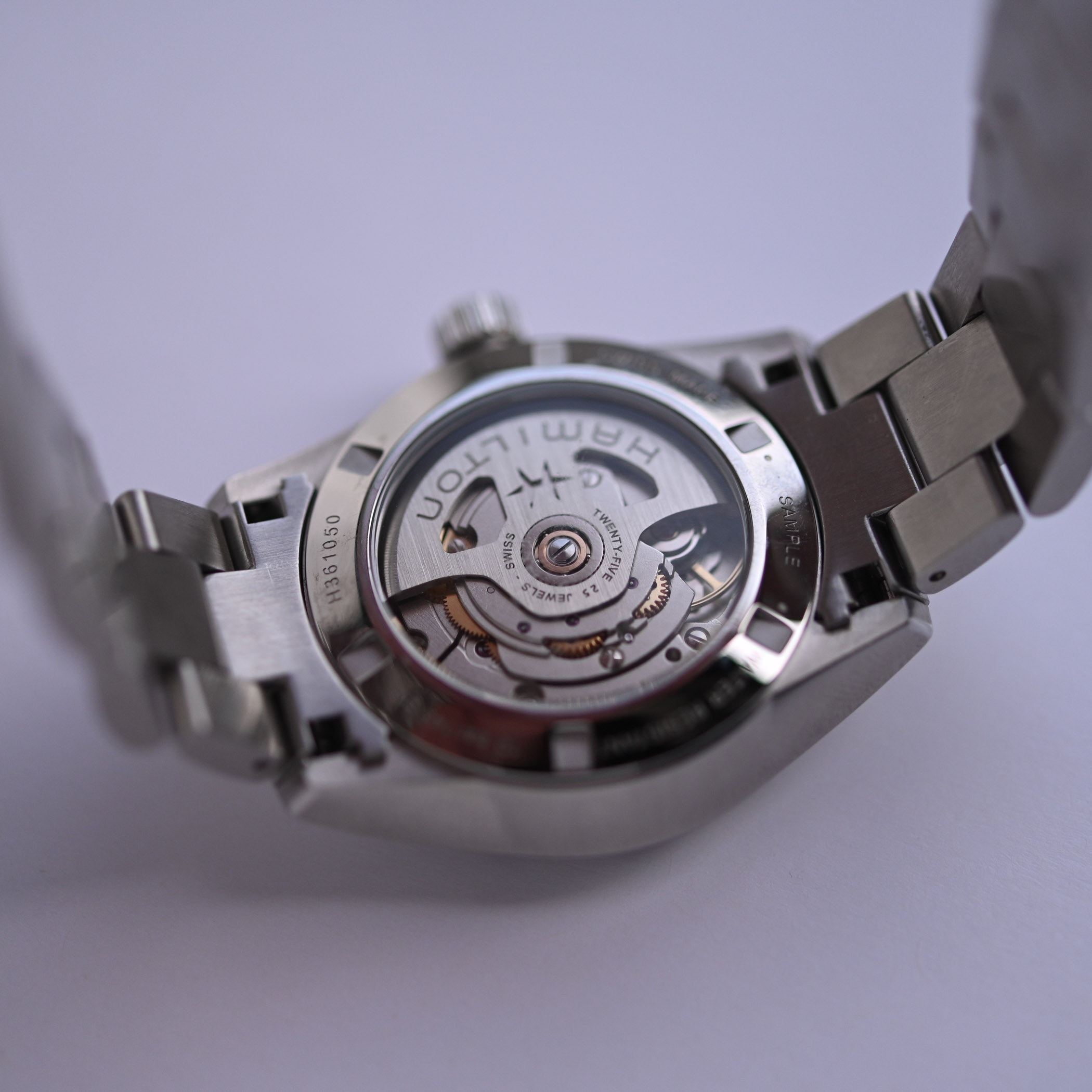 Quick facts: 34mm x 11.18mm – stainless steel case – sapphire crystals – Dark blue, pink, silver, purple, green dials with sunray-brushed finish – steel bezel with 60-minute scale – water-resistant to 100m – H-10 automatic calibre – 4Hz and 80-hour power reserve – 3-link steel bracelet with folding clasp – reference H36115140 (dark blue) H36105171 (pink) H36105150 (silver) H36105170 (light purple) and H36105160 (green) – EUR 1,225 / CHF 1,075 / USD 1,045