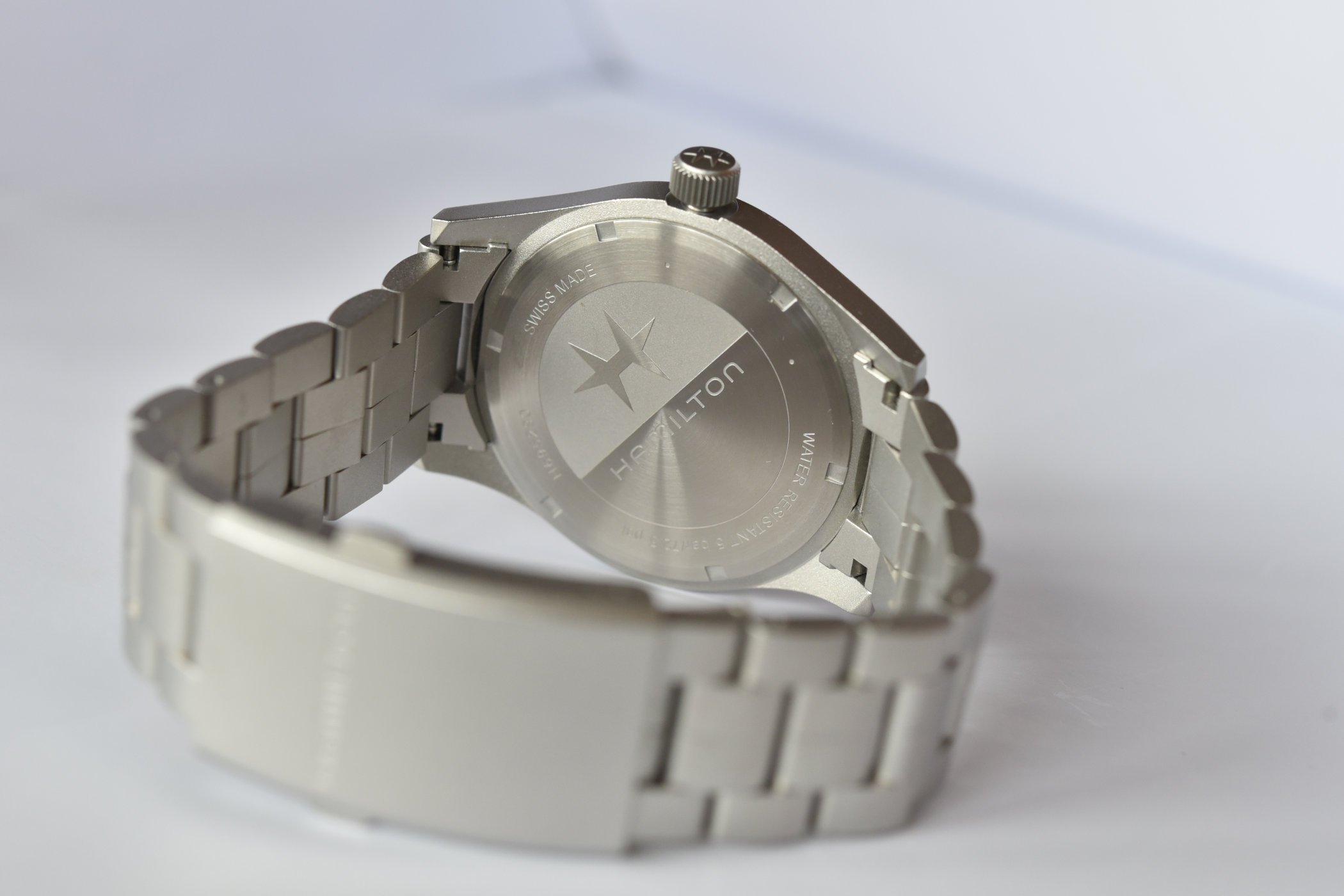 Bigger version of the same great watch.Bracelet option that doesn’t really suit but gives Hamilton something else to sell. Perfect already in 38mm. Done.