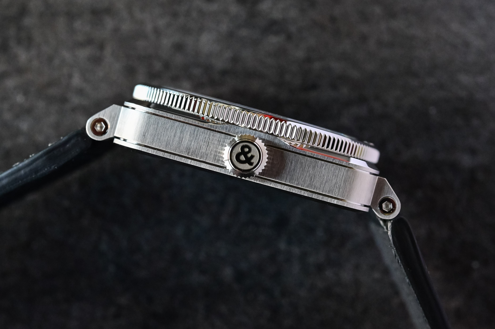 Even though the style is still very much Bell & Ross, the rather tool-ish look of the outgoing model is traded for a more sporty-chic appeal. The square case features a circular brushing on the top, with a wide polished bevel running along the entire edge of it. The caseband is brushed as well, but with a vertical pattern. Overall, there’s a nice combination of textures and this mix of finishing on the case is reinforcing the overall feeling of quality – in addition to the fact that the case feels (and is) solid as a rock.
