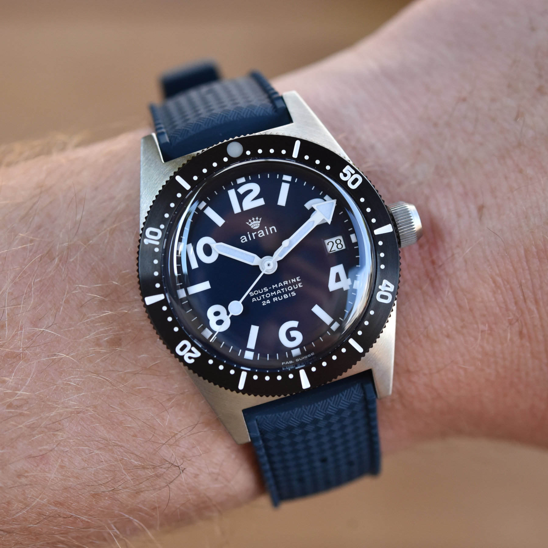 Airain will provide a black, blue or green tropic-style FKM rubber strap with the watch, depending on the dial colour. Next to that, Airain will also reintroduce the FixoFlex bracelet, the rights to which were acquired by Tom van Wijlick. Each Sous-Marine will be provided with one for that finishing vintage touch. The Re-Edition Lollipop and Re-Edition DNA Strand will not be limited, but the others will be. The exact number of pieces per colourway has not been determined yet. All references will be priced at EUR 1,600, with the next phase being the evaluation of the prototypes. Next month the second pre-order round will start, after which production will commence. If all goes according to plan, the Airain Sous-Marine will start being delivered to clients from October 2023 onwards.