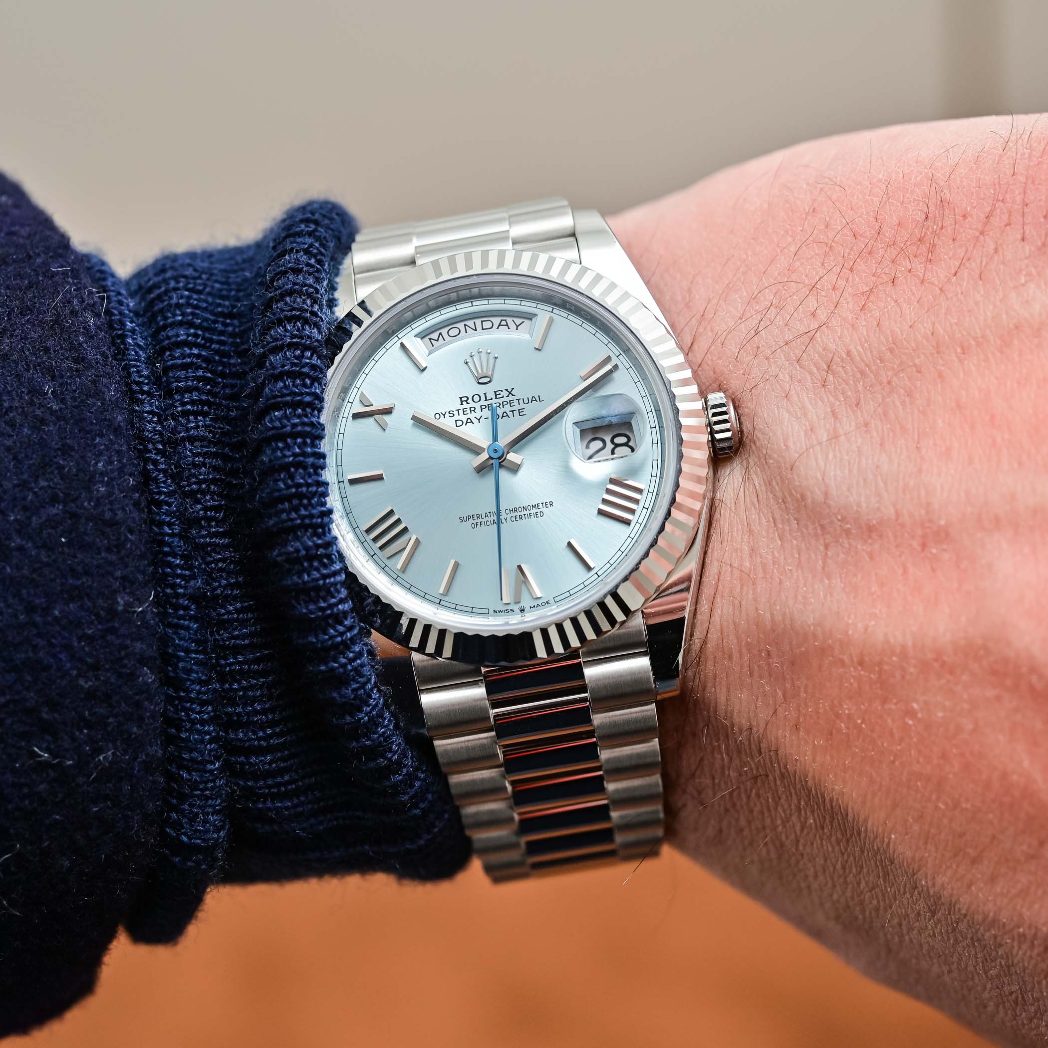 For more details about the new Rolex Day-Date 40 with Platinum Fluted Bezel, check our article here.