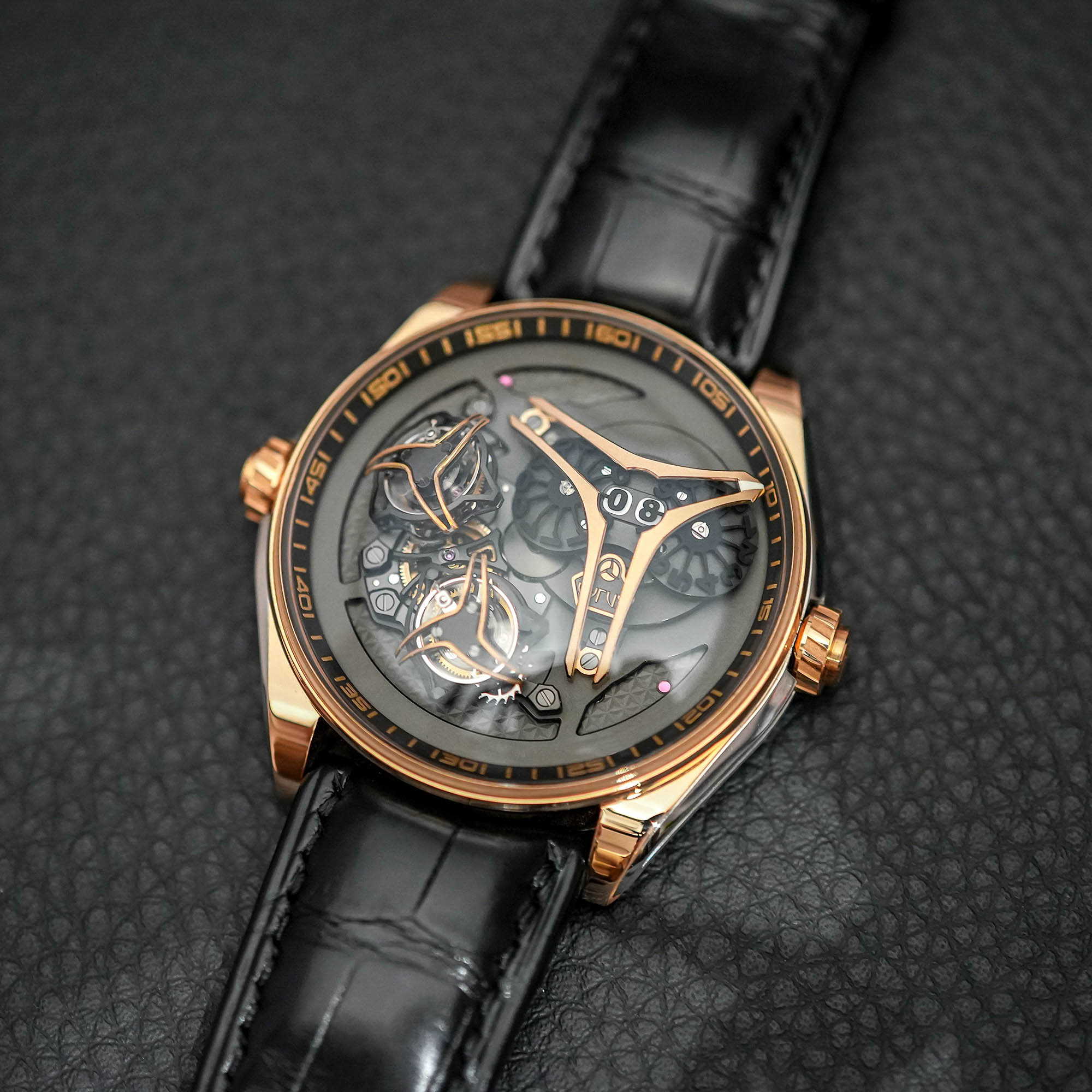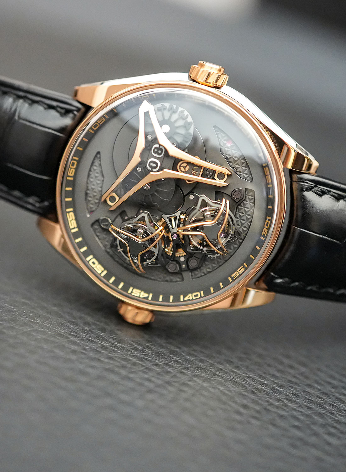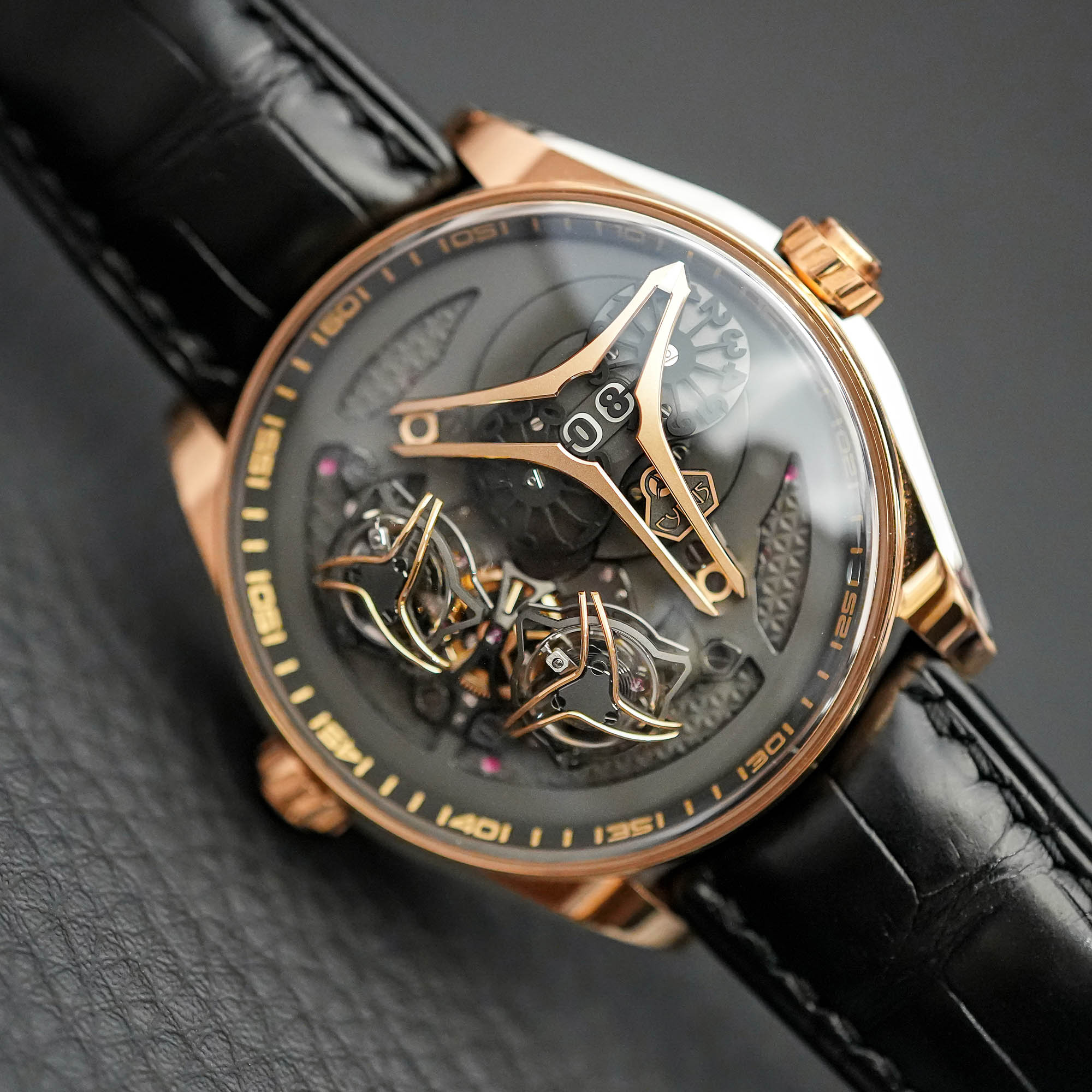 The new Cyrus Etheral Twin Orbital Tourbillon is reportedly priced at CHF 330,000. The brand will produce this rose gold and titanium version in a limited edition of 18 pieces. Cyrus often offers various iterations with different materials and colour combinations so that we can expect more releases of the model in the future.