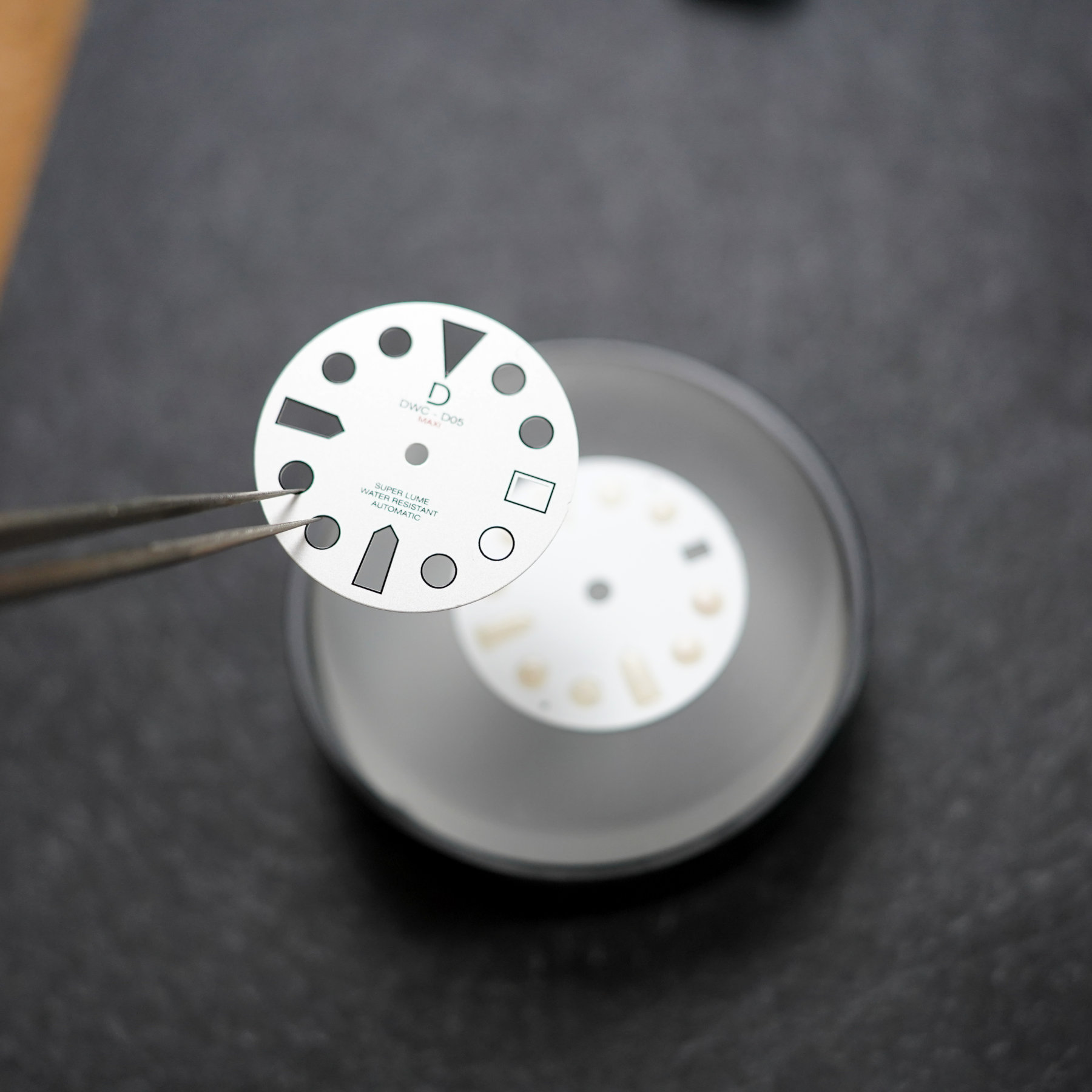 This time around, I was content with how it turned out, but you can’t be 100% sure until it has dried and cured for over 24 hours. Upon closer inspection, they’re not exactly perfect, and you can see some very small run-overs under a loupe. But, to me at least, they were good to go! A similar process is needed for the dial, where you apply the lume to the base layer. It takes some concentration to fill in the hour markers and this time around it’s a matter of applying the right amount of lume. Too little, which I did with my first try, and it doesn’t fill the entire marker hole when dry. Too much and you run the chance of the dial becoming too thick when sandwiched.