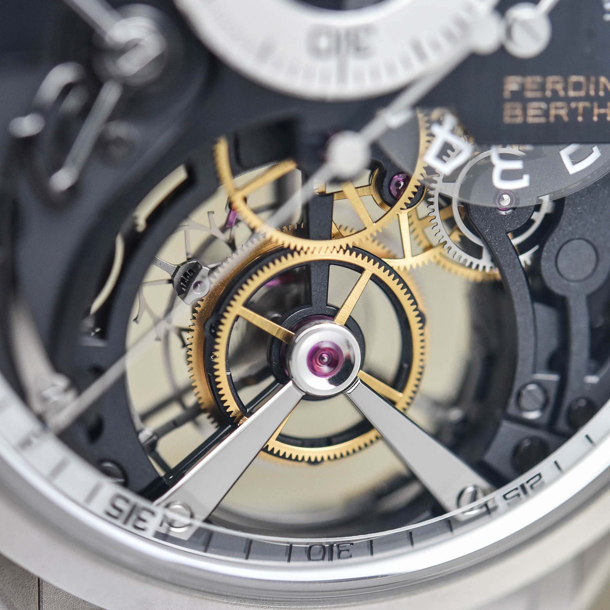 As of now, and in line with their exclusive positioning (producing a few dozen handcrafted watches every year retailing at over CHF 200,000), Ferdinand Berthoud will communicate the total number of units produced for each in-house movement, leaving the choice of the case design to the client. The first creation to adopt this strategy is the Régulateur Squelette FB RS, a new model powered by the calibre FB-T.FC-RS whose production will be strictly limited to 20 units. Therefore, two variations will be available: the FB 2RS.2 with a round case in 18-carat ethical pink gold and the FB 1RS.6 with an octagonal case in carburised stainless steel (the watch we had for this hands-on session). It is not the first time Ferdinand Berthoud uses carburised steel. With its reinforced molecular structure, the grey surface of carburised steel (1200 Vickers) is extremely resistant to scratches and corrosion.